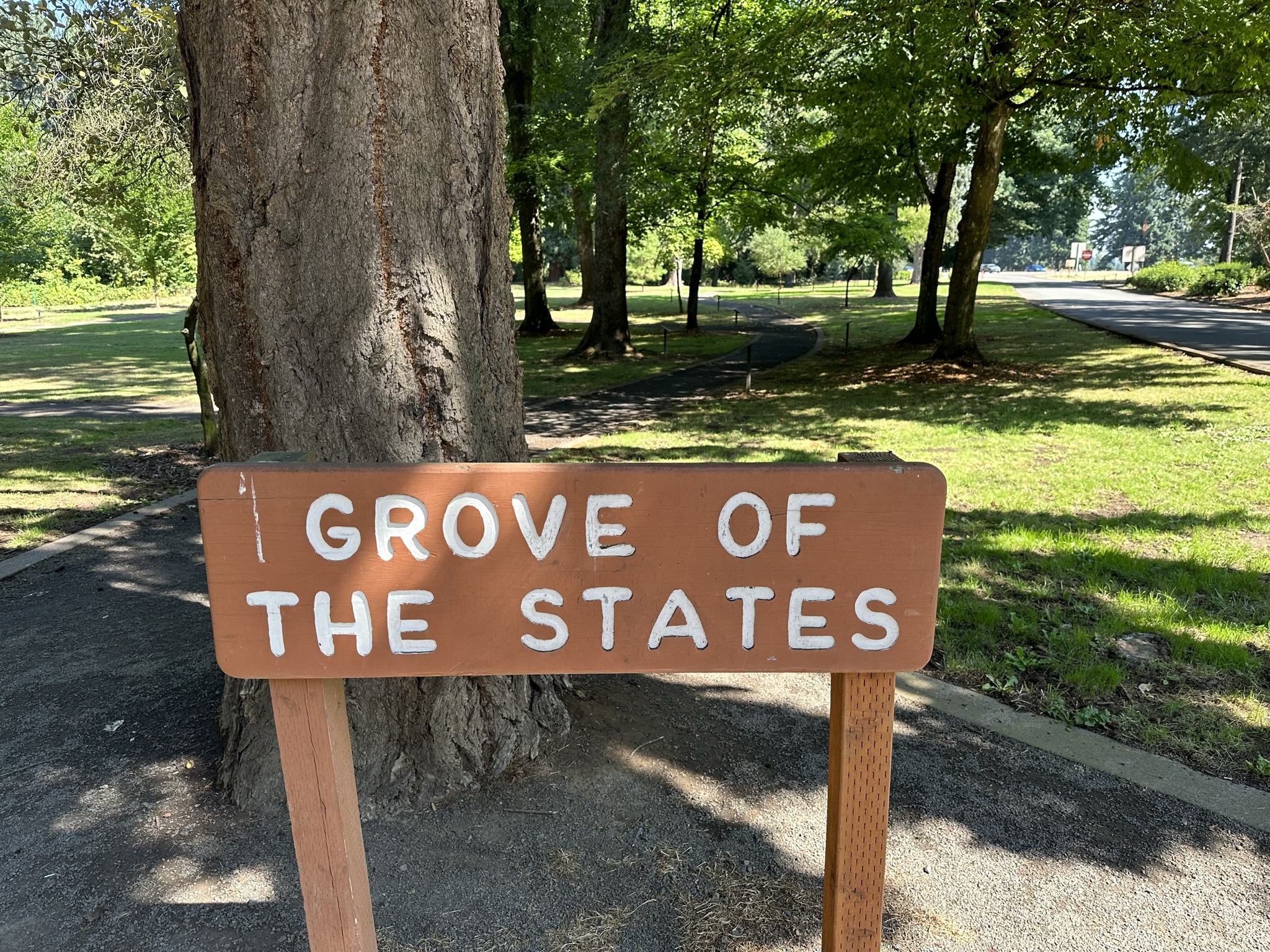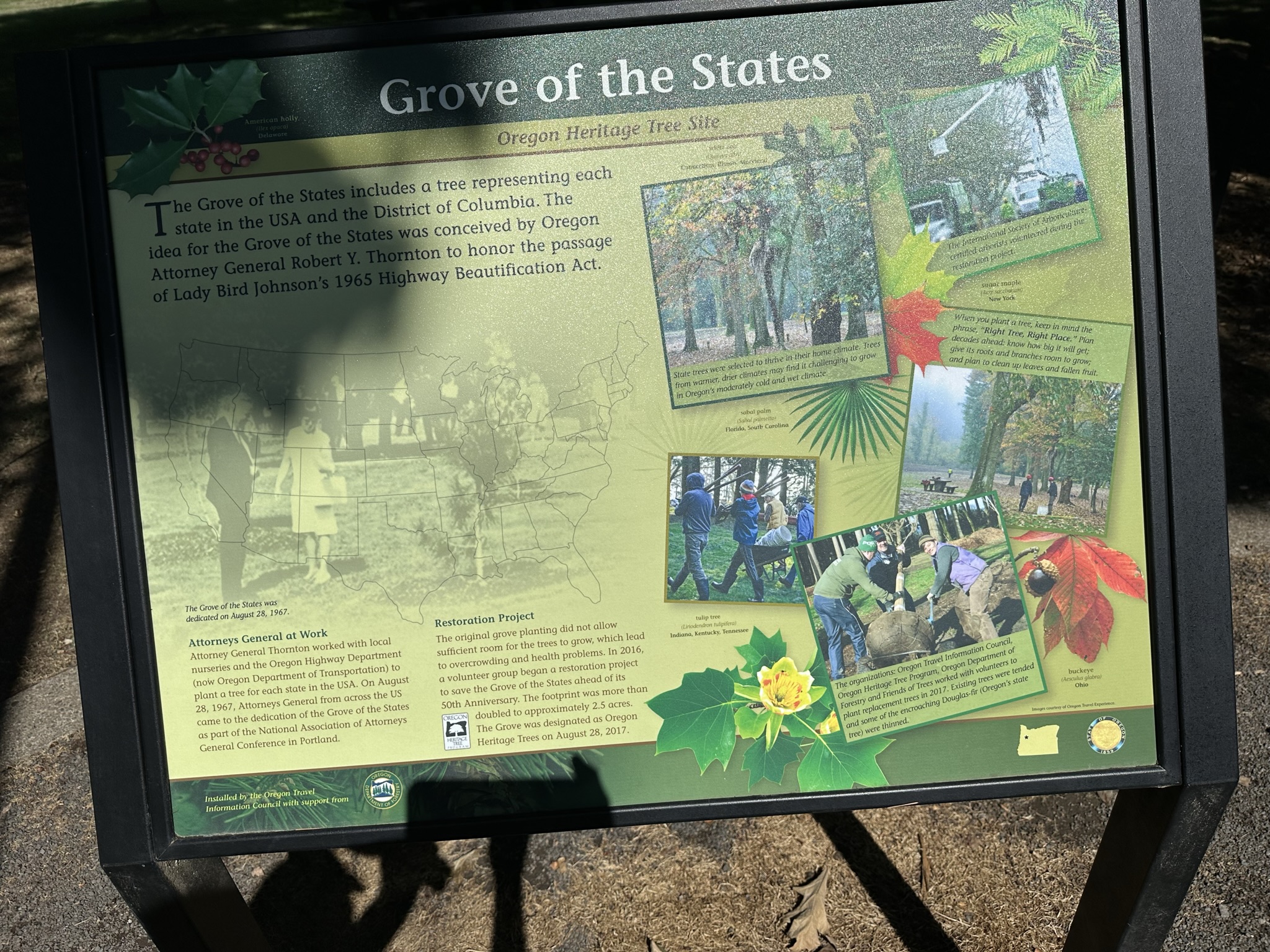 Saturday, 9/2/23 - We're on our way. This is a Rest Stop in Oregon at something like Mile Post 281, southbound on Interstate 5. There's a tree here for every one of the 50 states. Sorry about the shadows!
