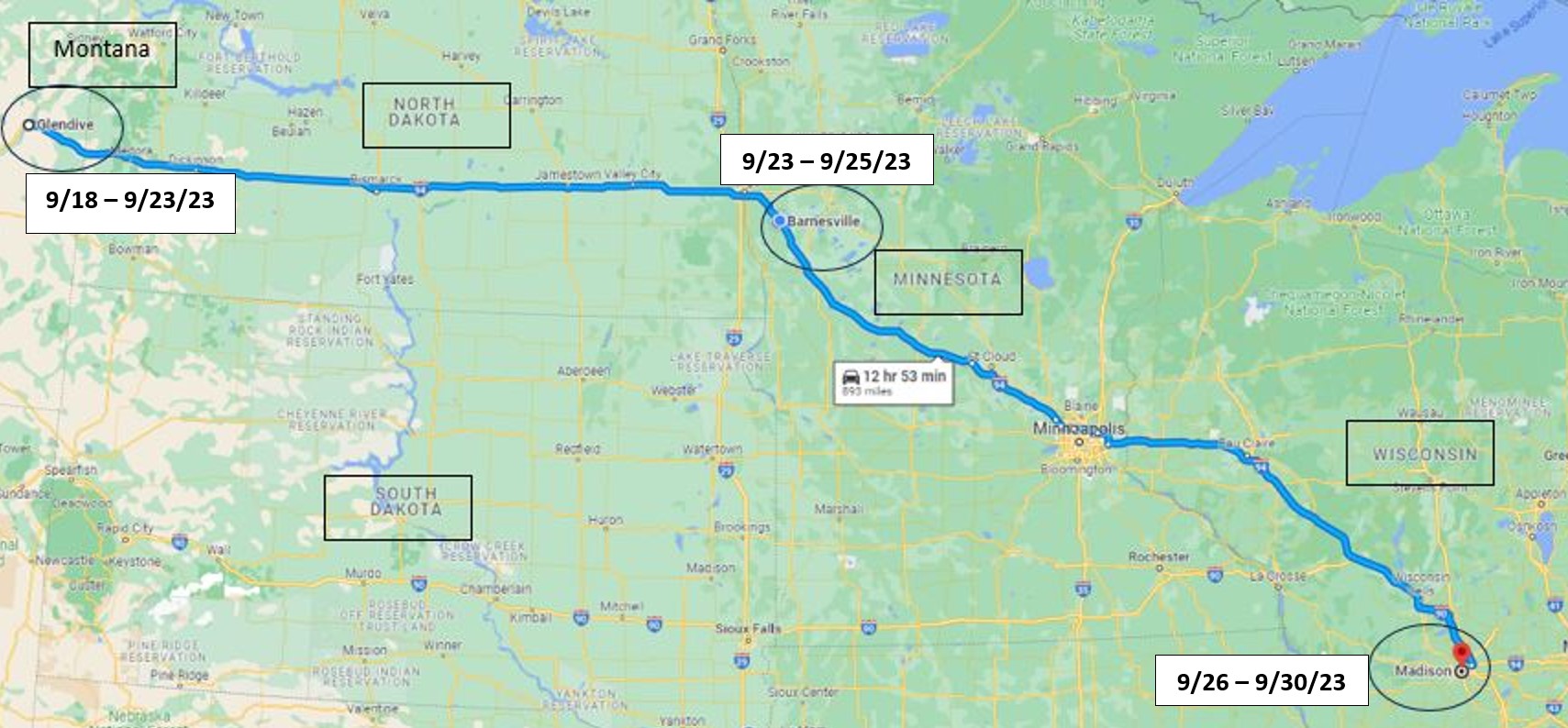 Here's a brief map of where we've been for this travel leg -- 9/21/23 - 9/30/23