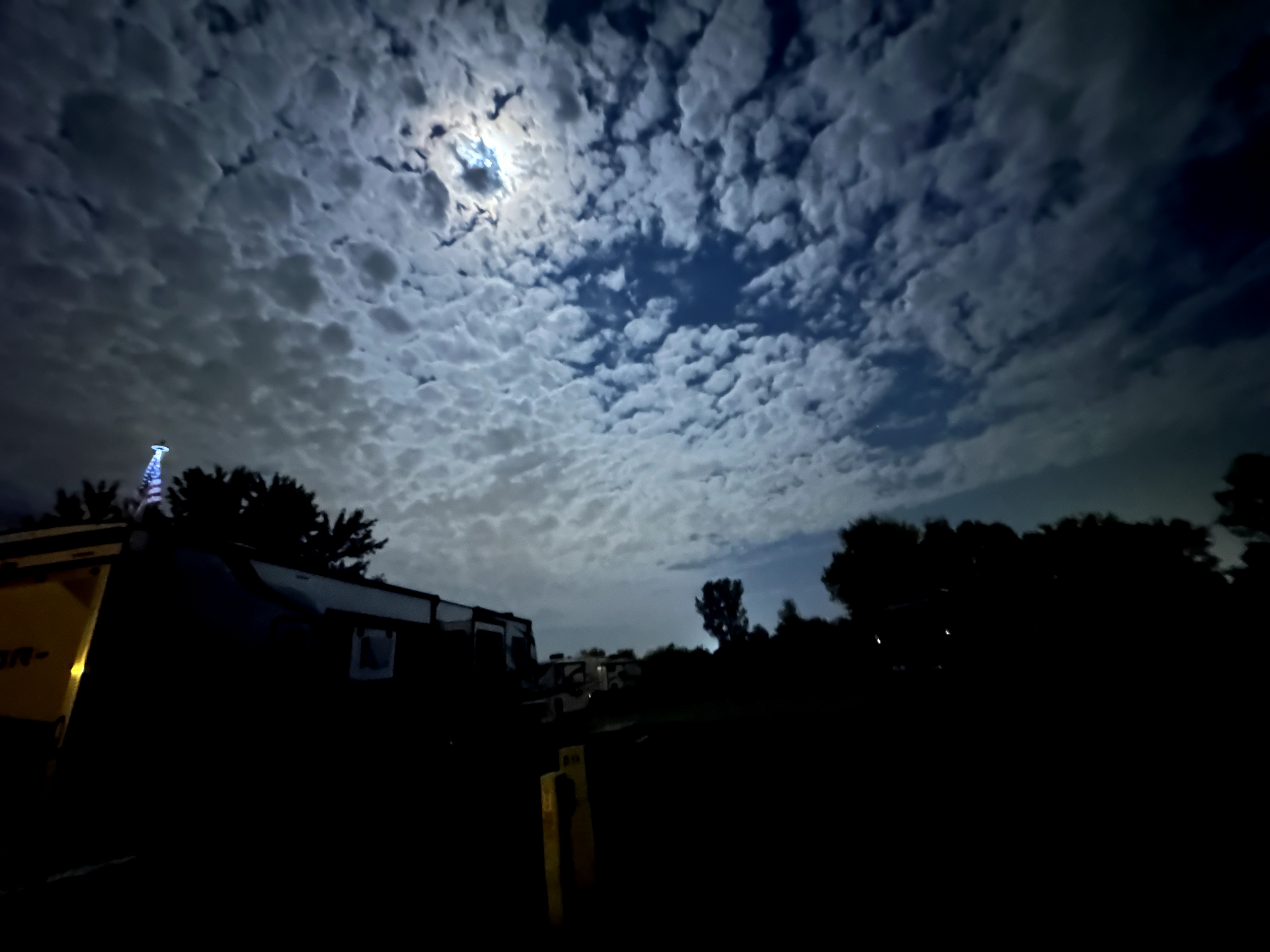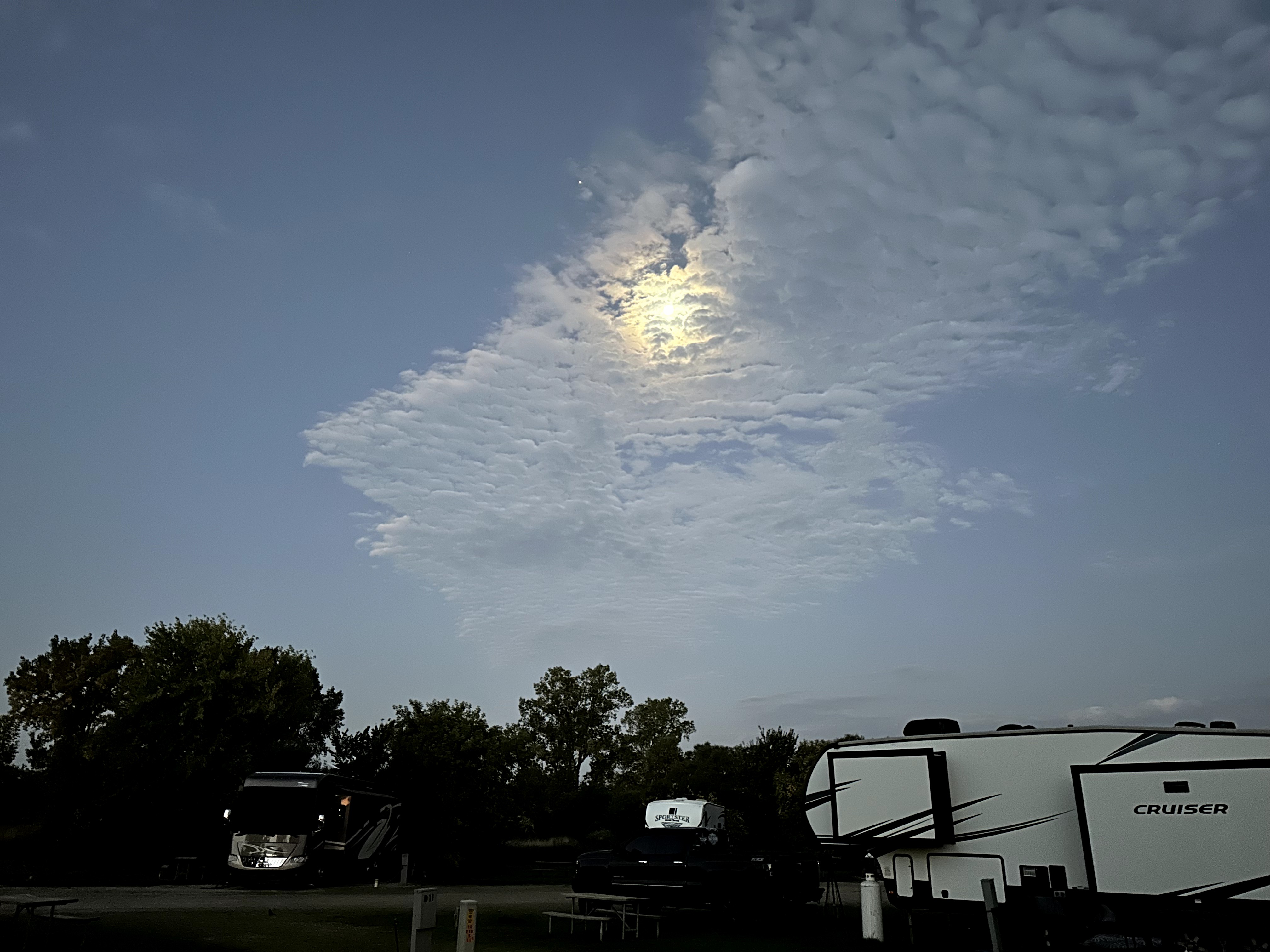It's Sunday evening, 9/24/23. I got a pretty good shot of the moon through some clouds at our site in Barnesville, Minnesota. |