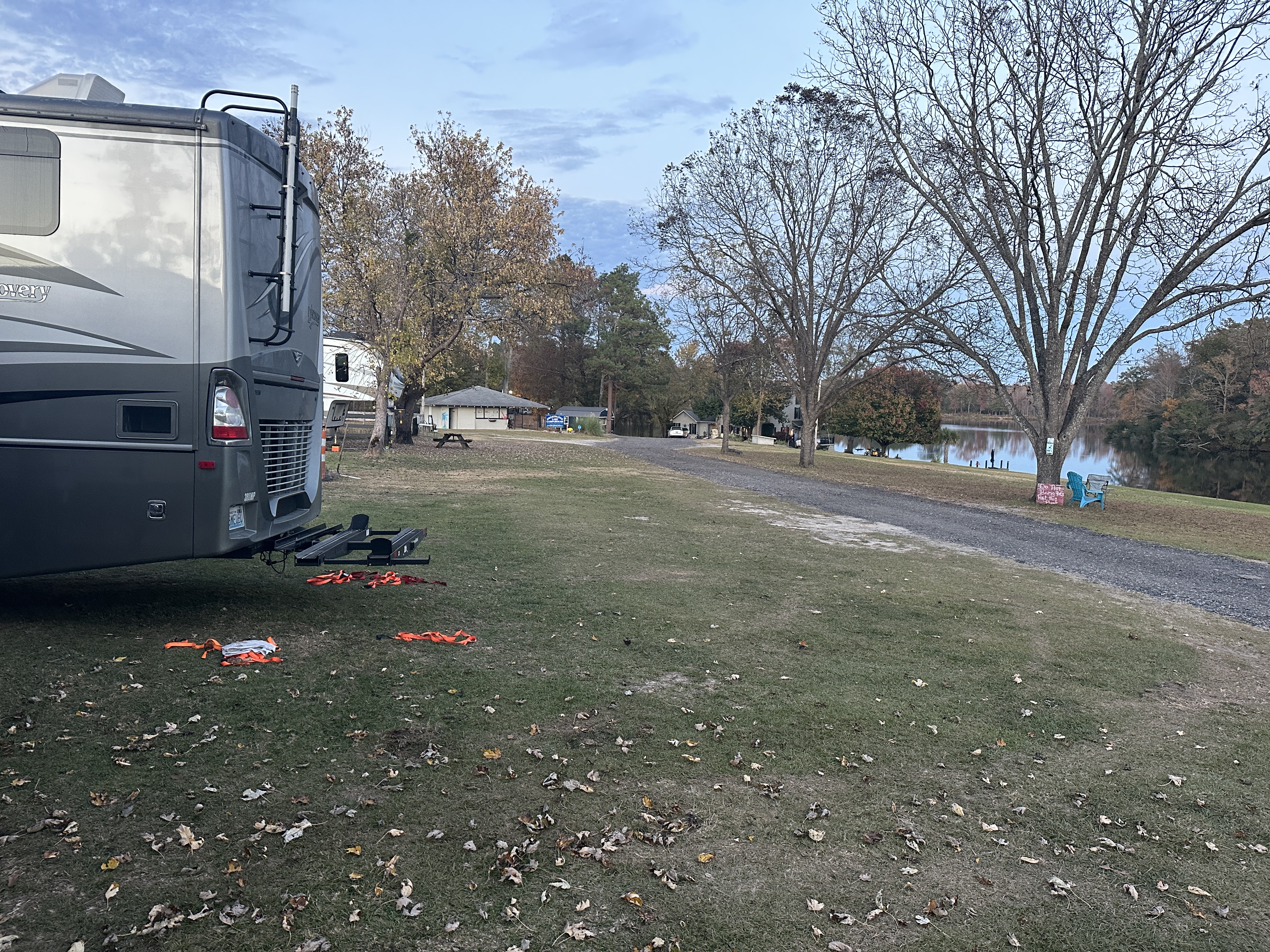 A view from our RV site at Sweetwater Lake Campground near Saint Matthew and Congaree National Park.