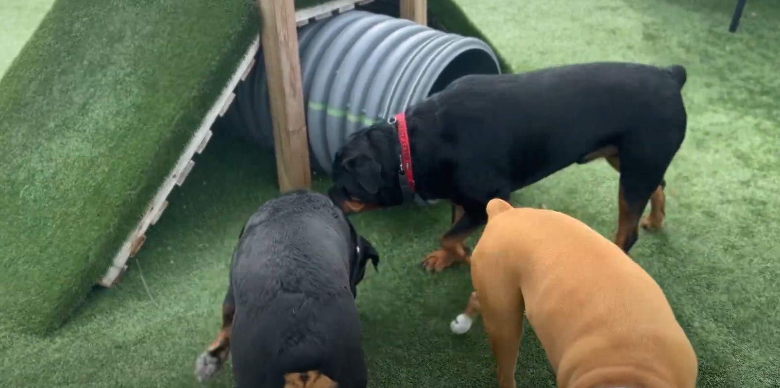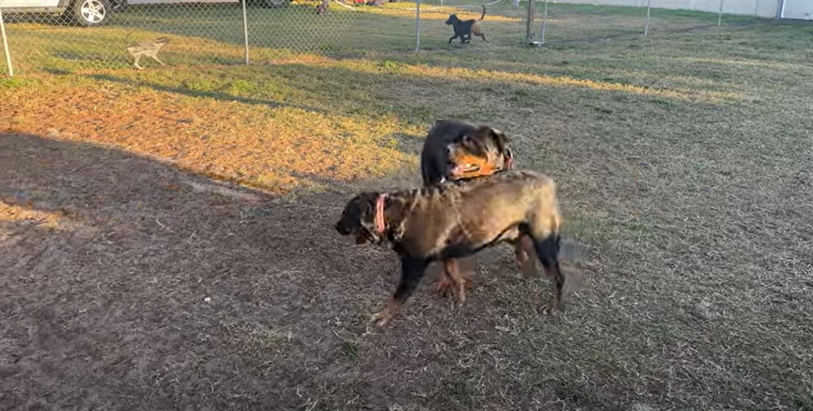 Dakota and Bailey rough-housing at the Orange Blossom KOA Dog Park 2/2/24.