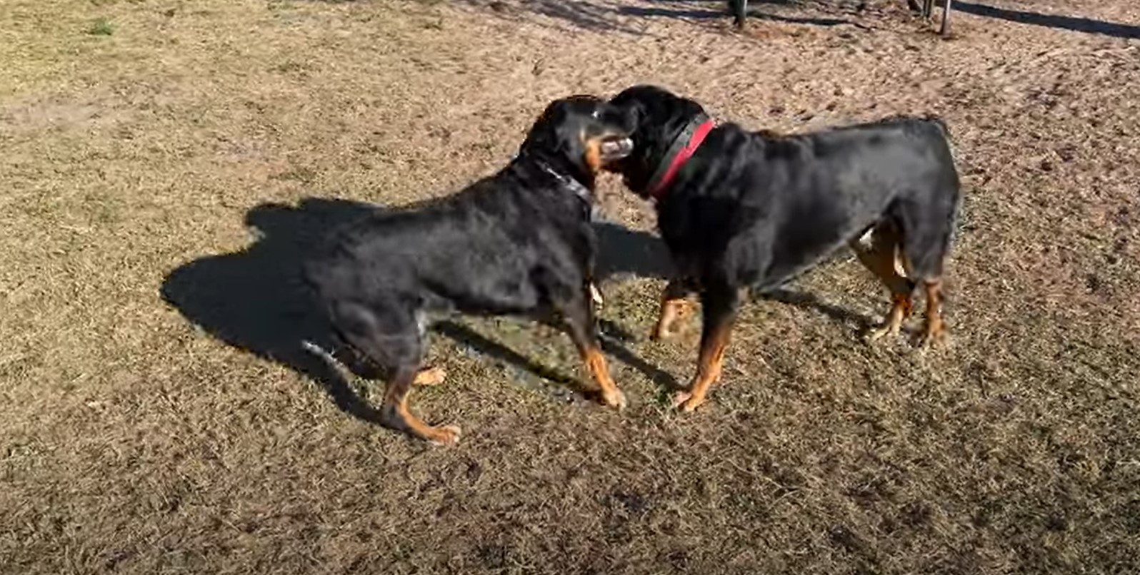 Dakota and Bailey rough-housing at the Orange Blossom KOA Dog Park 2/3/24.