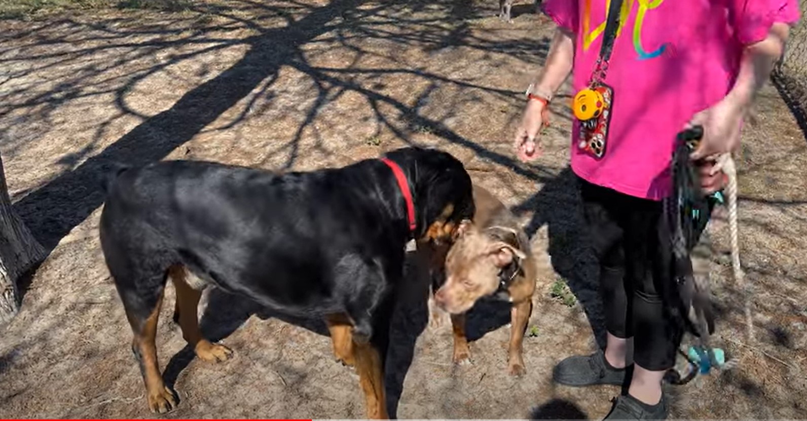 Dakota and Bailey with Pittie Puppies at Orange Blossom KOA around 2/3/24. They gray Pittie in this video is totally deaf.