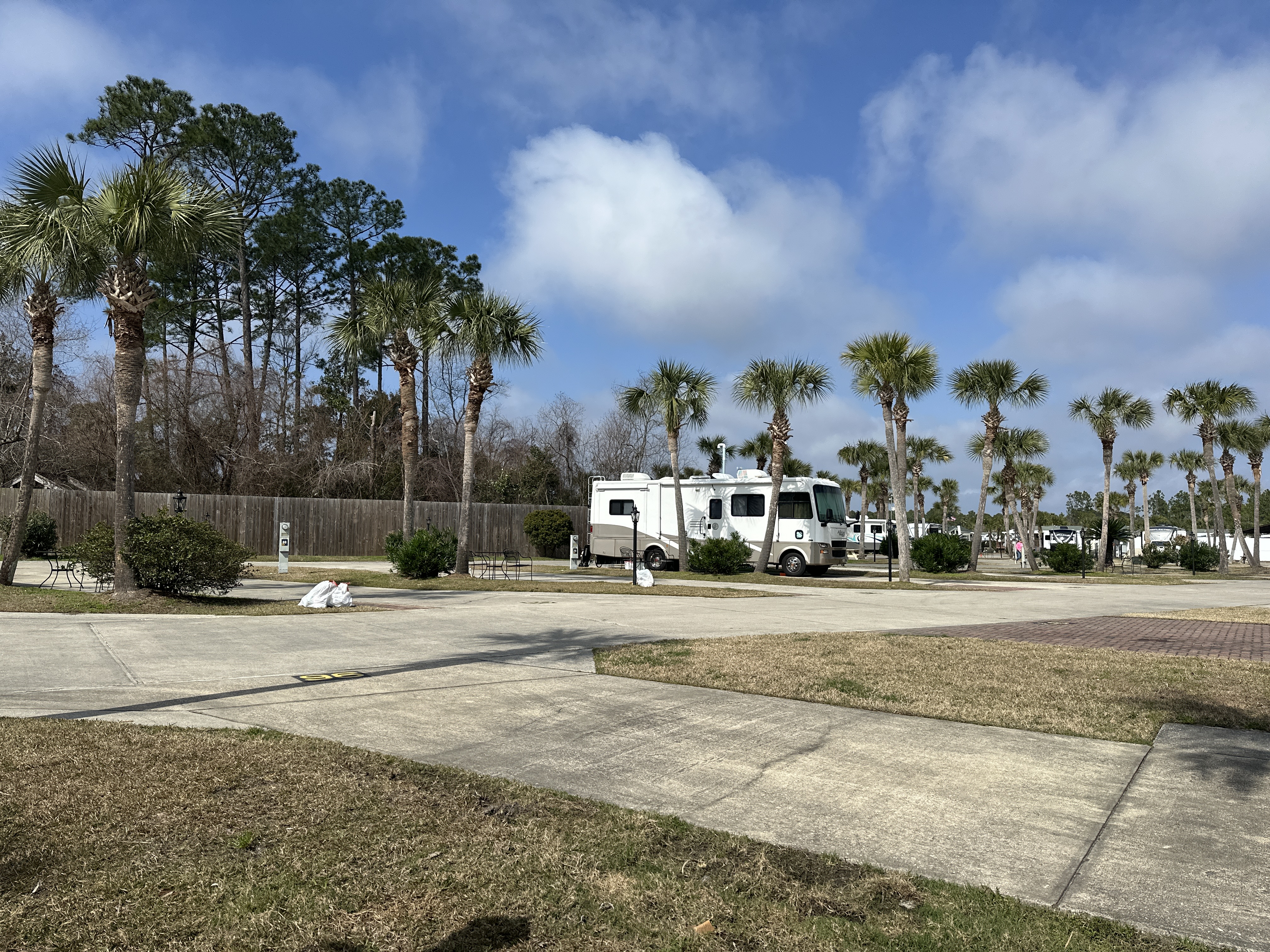 Our space at Sun Outdoors RV Park in Panama City Beach, Florida. This must be about February 6, 2024. |