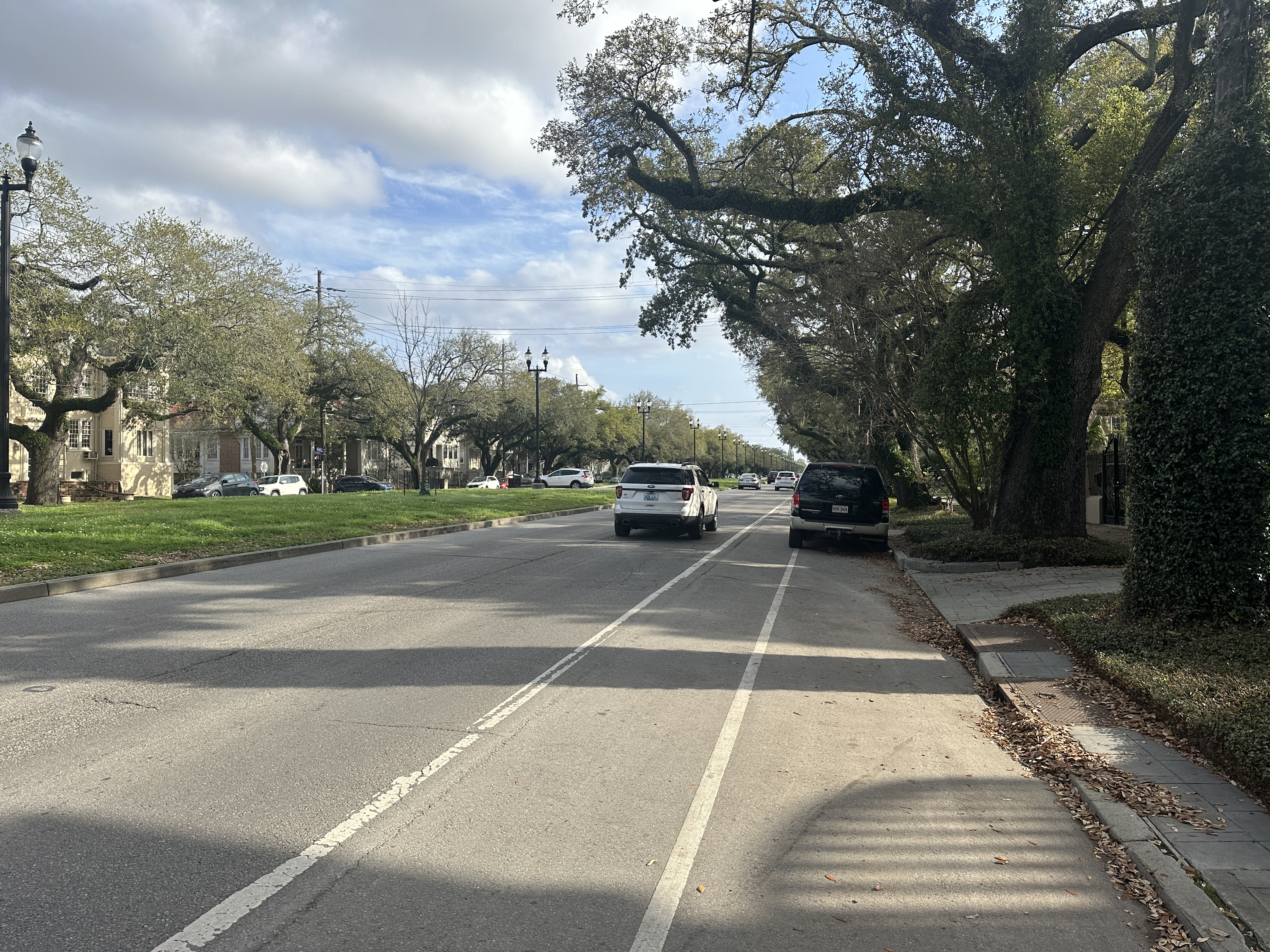 It's March 3, 2024 and I'm out exploring New Orleans. This is just outside the "Garden District", and it's about 3 in the afternoon, and about 79 degrees out. Nearly perfect for riding. |
