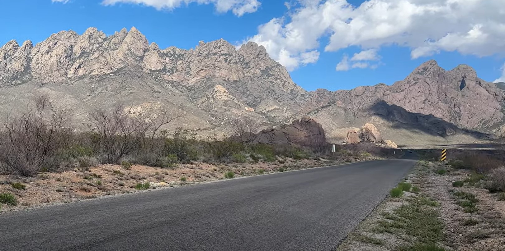 Tuesday, 4/23/24. Approaching Baylor Canyon Road alongside the Organ Mountains.