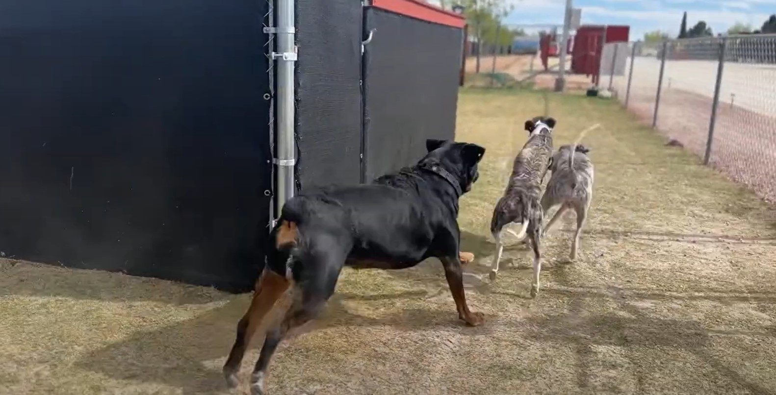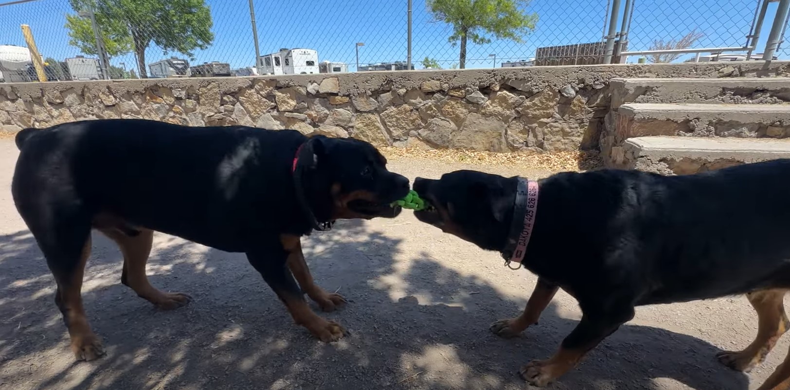 Wednesday 4/17/24. Short interaction between our puppies and a couple of Whippets at the Fort Stockton RV Park