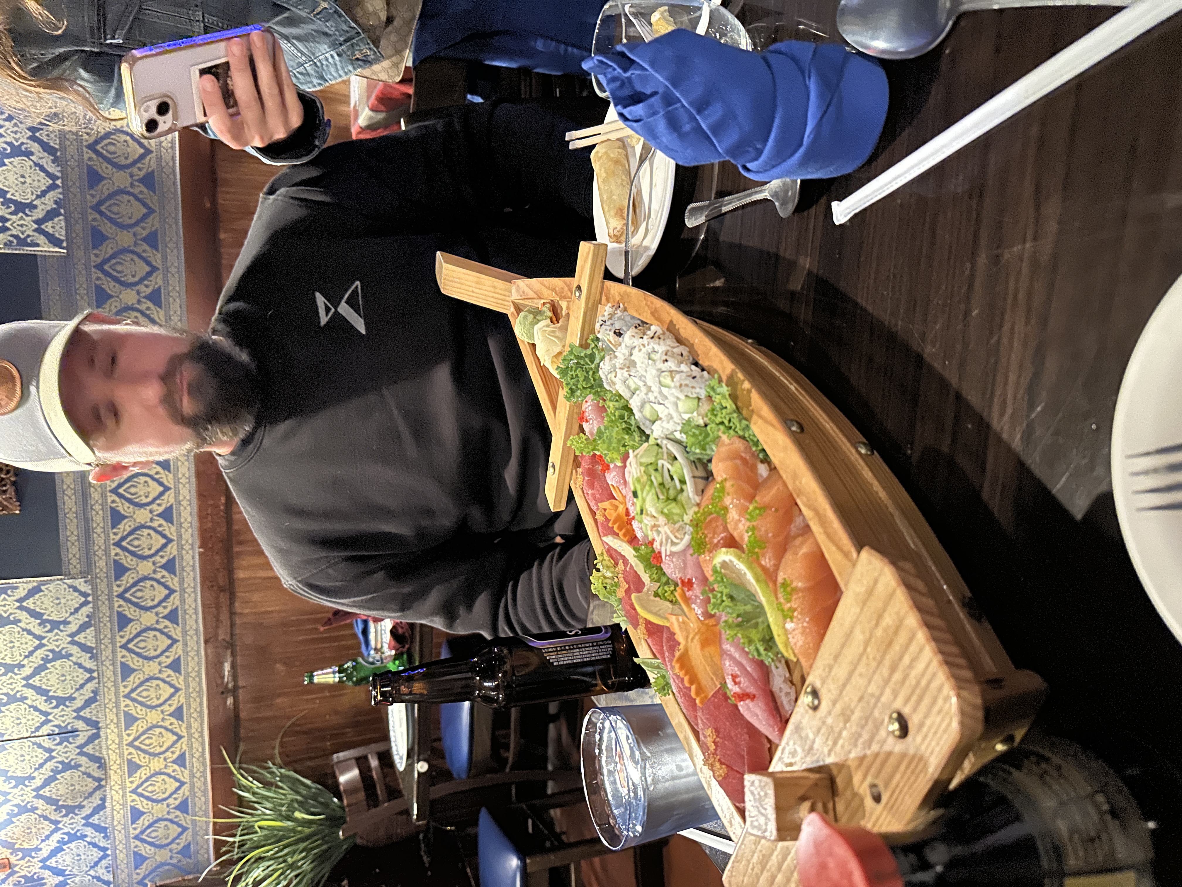 David, Aaron and Jennifer's brother Mikey took us all out to a stellar Thai restaurant right before karaoke, somewhere around 12/7/2024. |