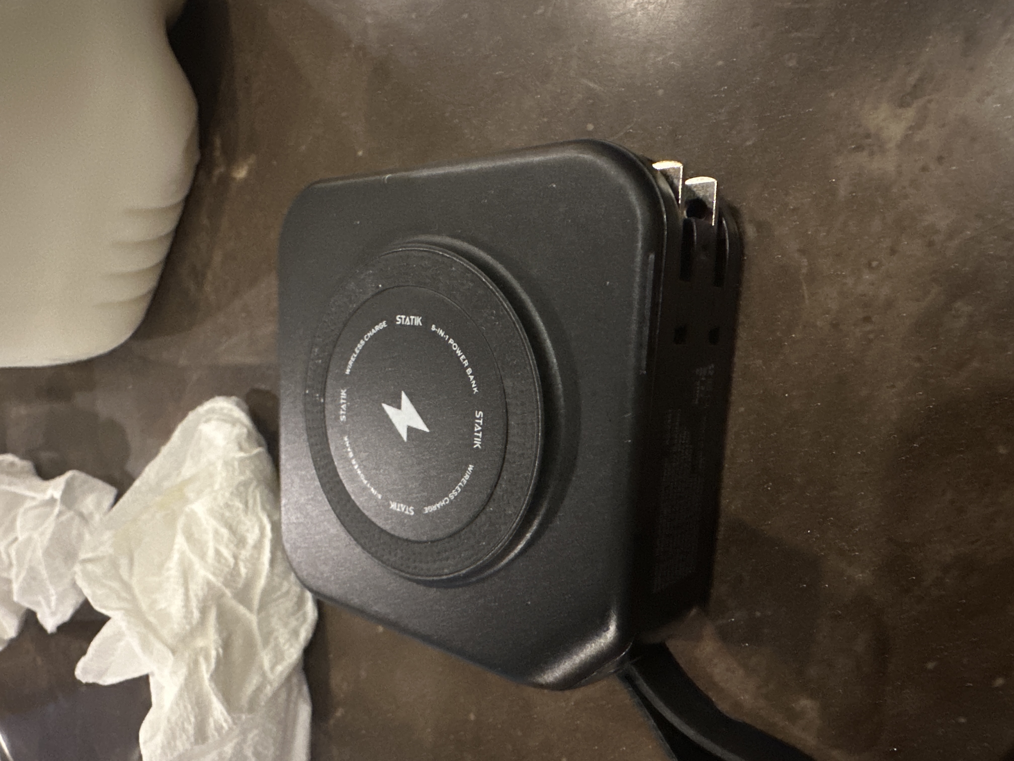 And this is a really cool gizmo that Gloria gave me for Christmas. It's fron "Statik", and they have very useful charging cords that come with adapters to use them with various devices (USB-C, USB-Micro, and iPhone). This one is also a recharging battery and has an iPhone cord and USB-C cord built in. |