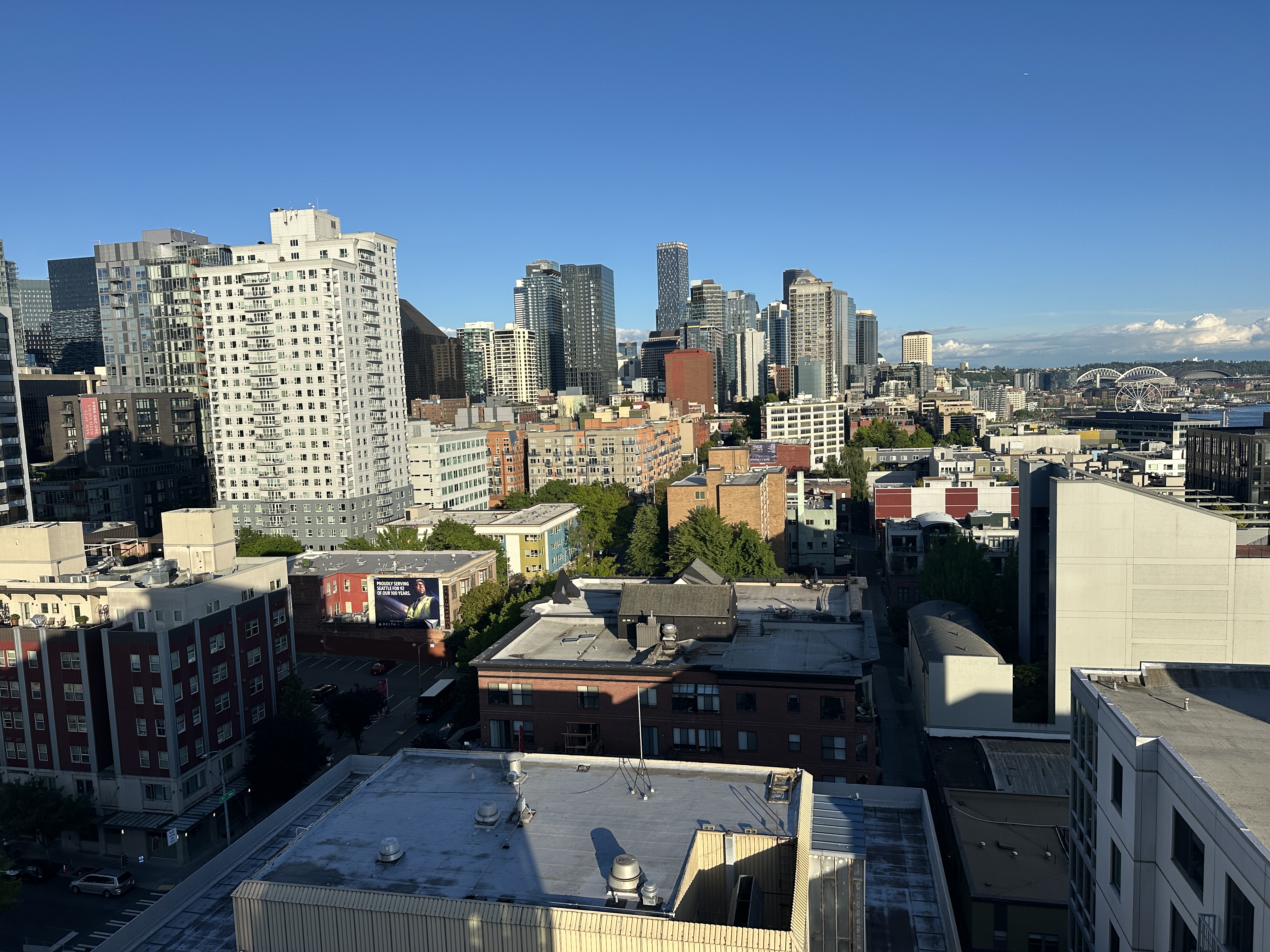 I'm at Aaron's in Seattle at the rooftop BBQ area. The view and weather was spectacular all day. |