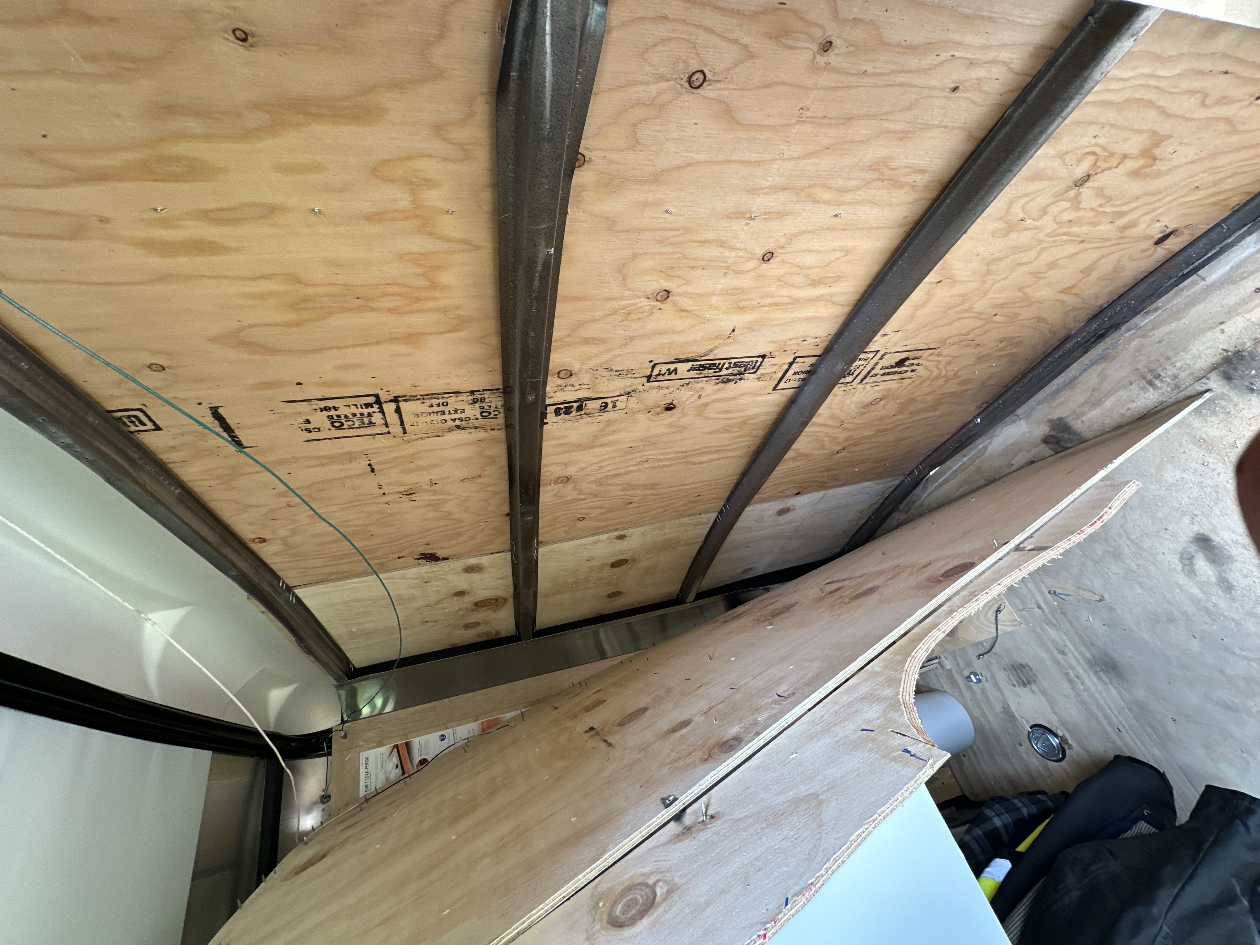Serious ouch -- Our traveling down the road has caused my cabinets in the Motorcycle trailer to completely separate from the front wall. Oh my.... |