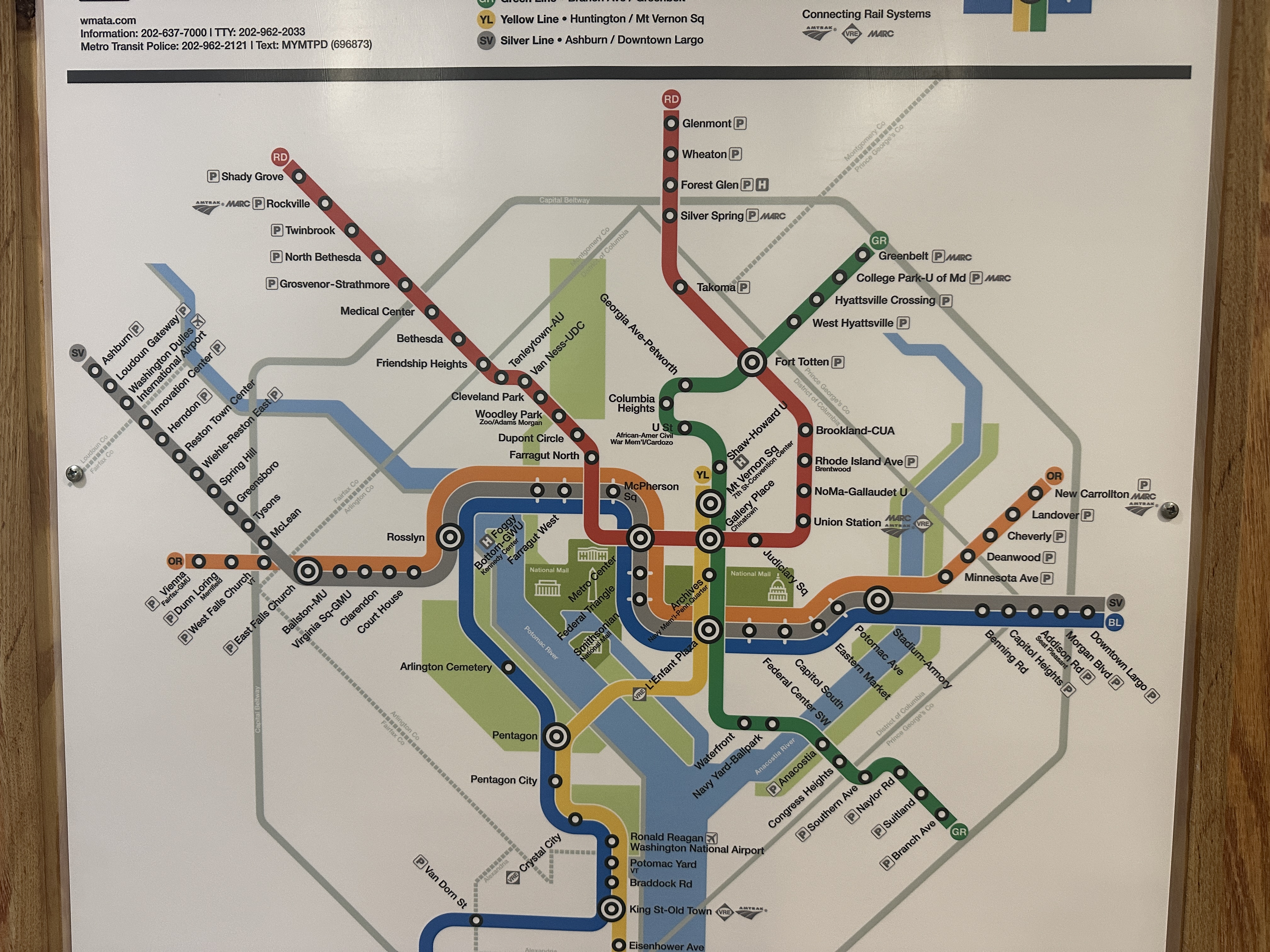 This may LOOK intense or confusing, but the fact is that the Metro system of trains to from, and around the city are phenomenal. The six colored lines on this chart go to or from everywhere, are very inexpensive (especially for us seniors!) and a delight to ride on. |