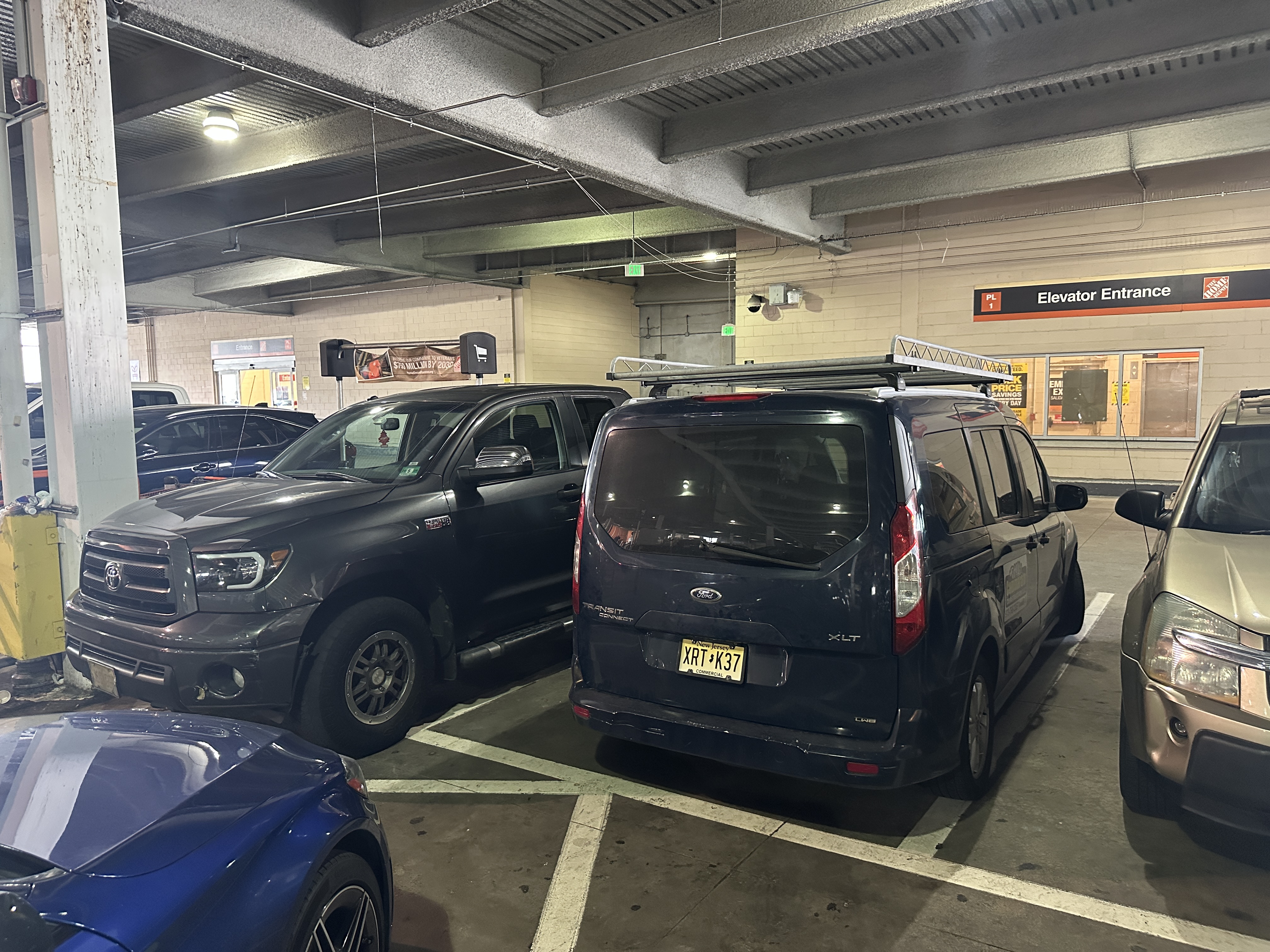It's now Friday, 5/30/25 and I'm at Home Depot in Jersey City, New Jersey. ALL of the sizeable vendors I would visit have their parking underground because of the space limitations in the City. This one is Home Depot, just about a mile fro our RV park, Liberty Harbor RV park. |
