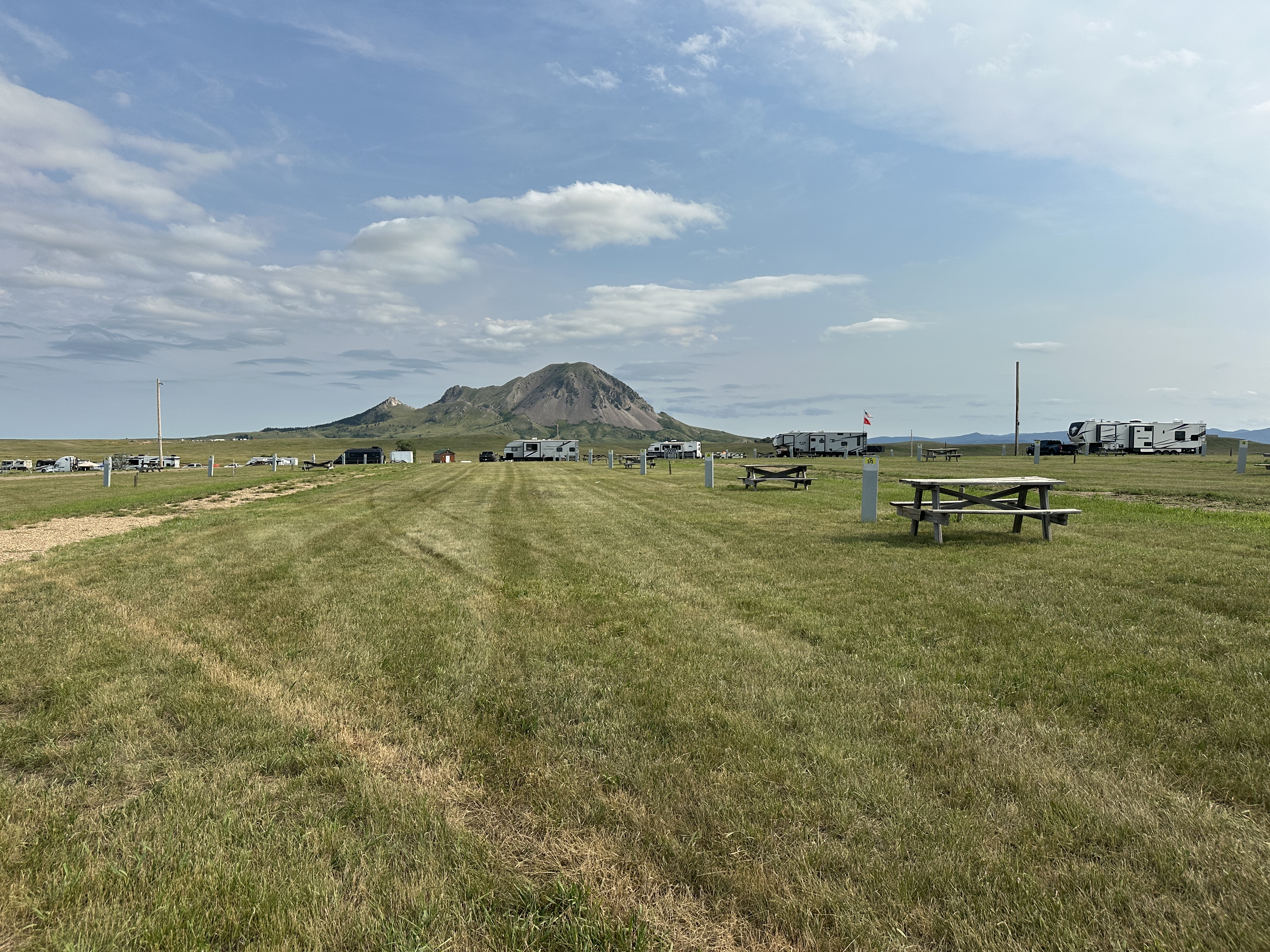 It's July 23, 2025 and we have arrived at our RV spot near Sturgis, SD. The town closest to us is Vale, SD, and Sturgis is about 13 miles away, about a 20-minute ride for our two-week stay there. We are a week before the beginning of the rally now, and the park is pretty much DESERTED except for maybe 10 RVs. The RV park is called Pappy Hoel (pronounced to rhyme with "Foil"), and it probably holds close to 1,000 RVs. |