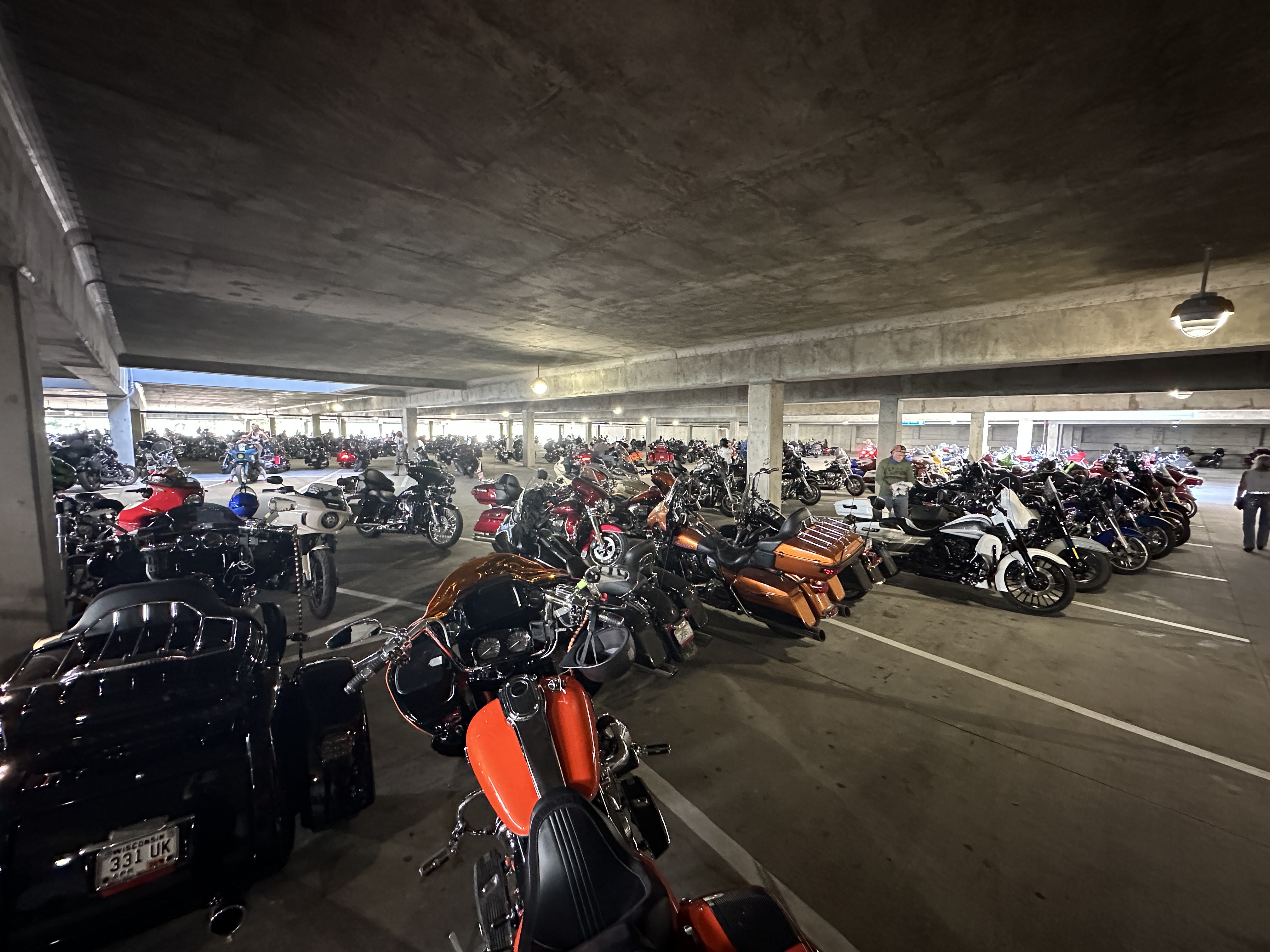 The parking lot at the Full Throttle must hold parking space for over 2,000 motorcycles. It is nowhere NEAR partially full! |