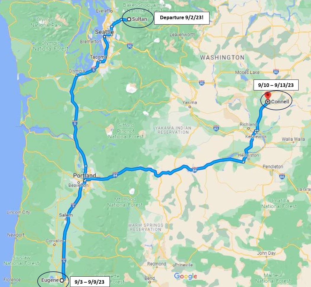 Here's a brief map of where we've been for this travel leg, 9/2/23 - 9/11/2023 --