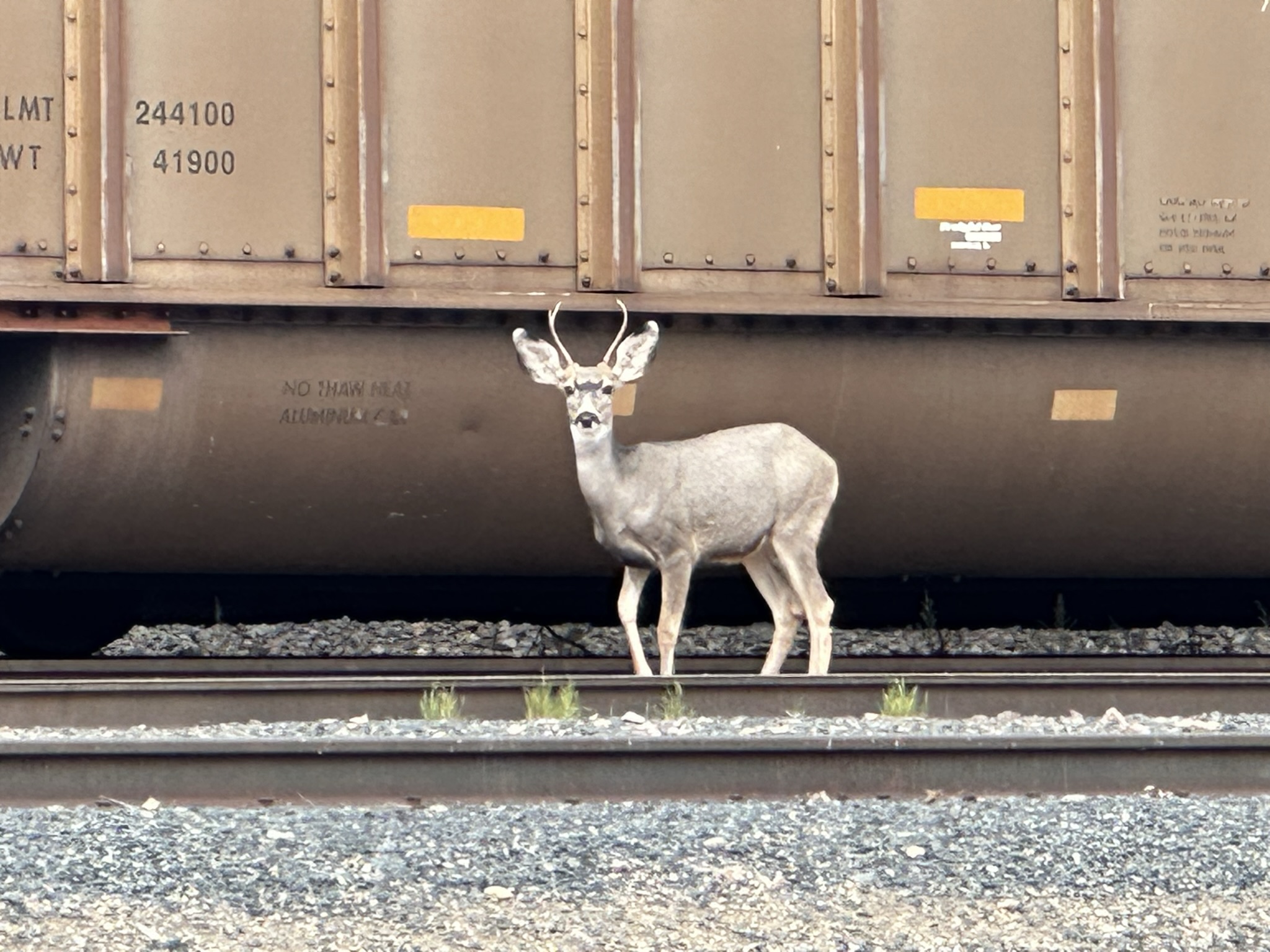Deer came and went on the railroad tracks right beside the RV park in Glendive, MT |