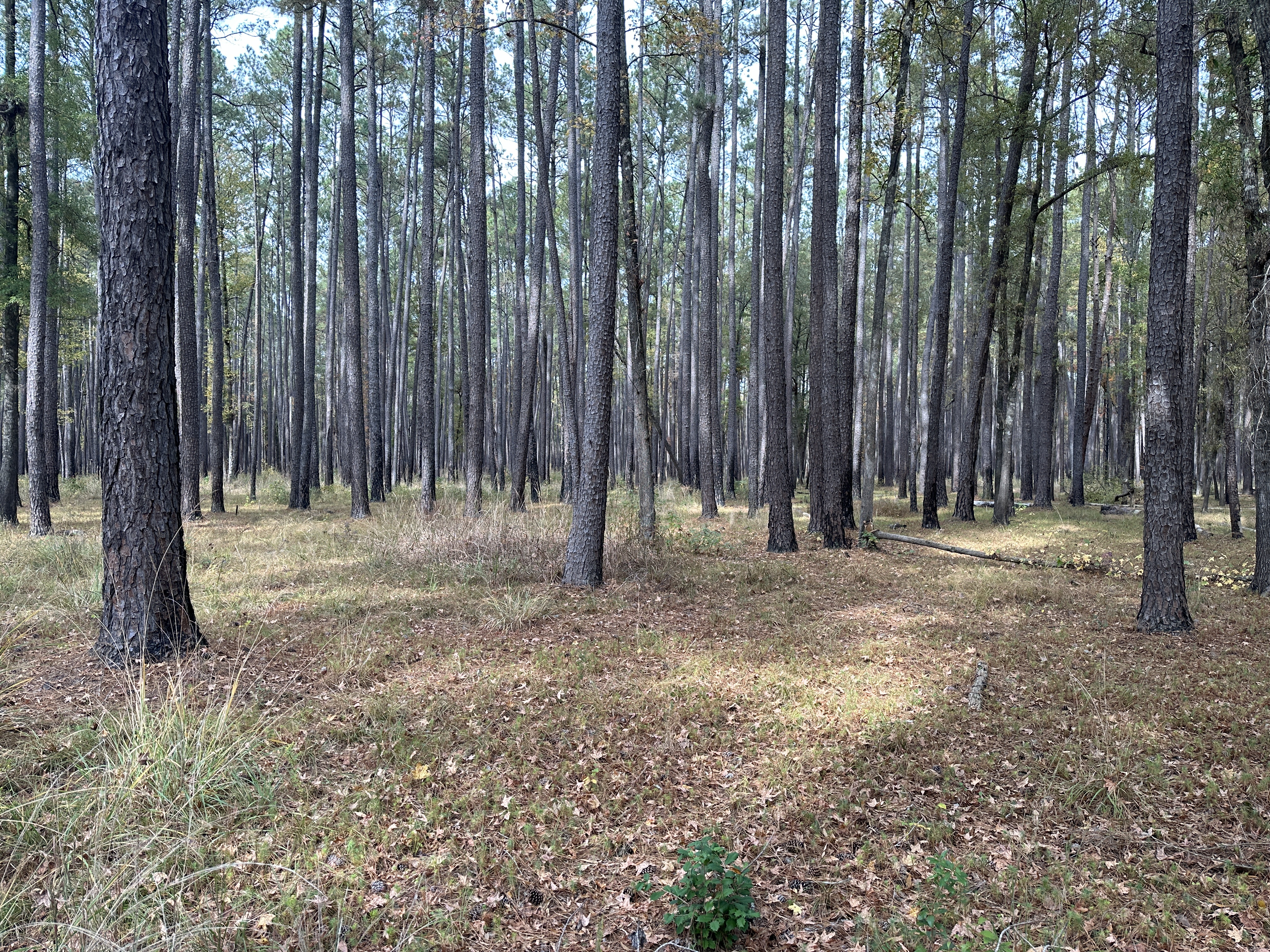 A view from our RV site at Sweetwater Lake Campground near Saint Matthew and Congaree National Park.