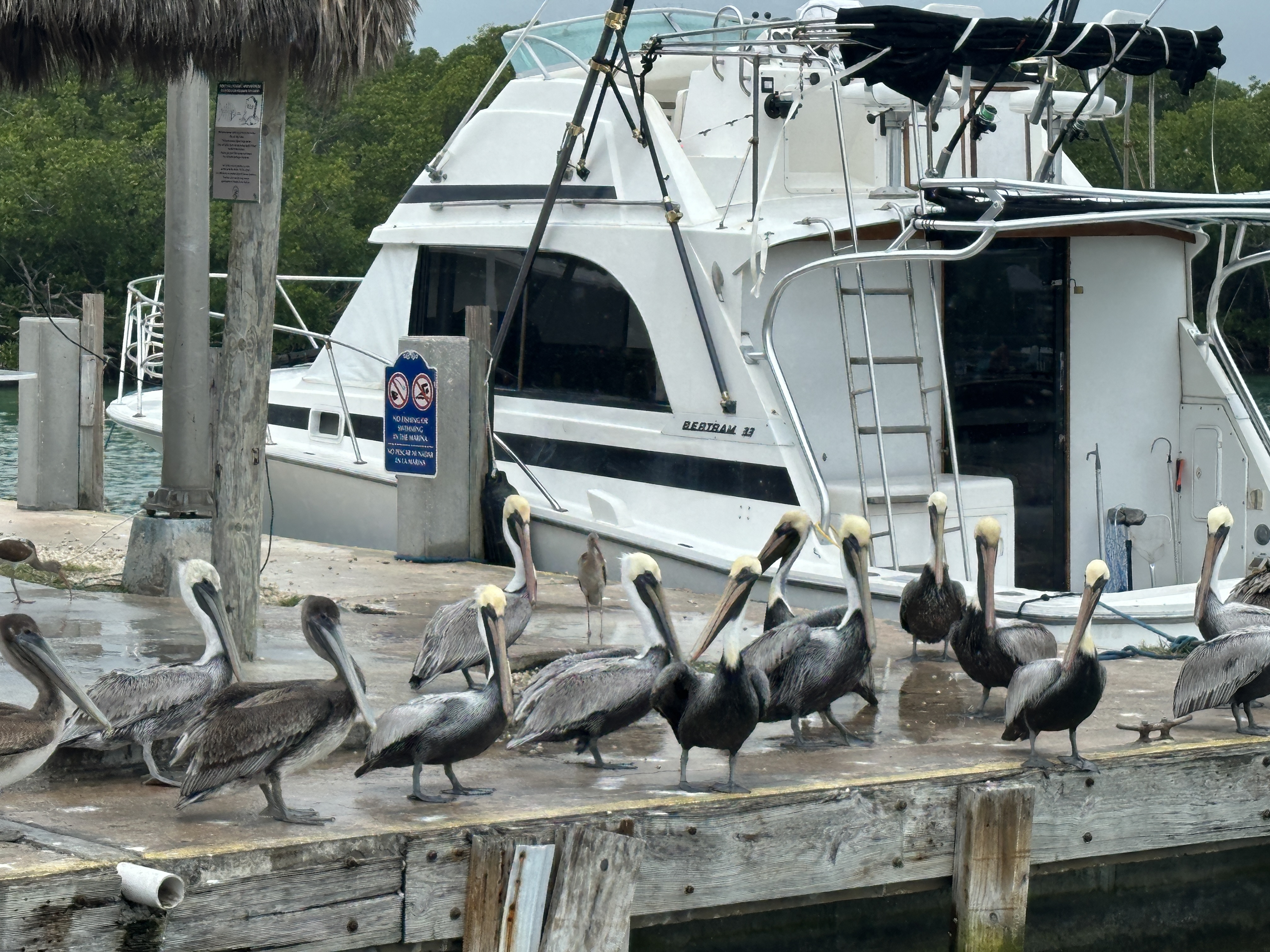 This is right beside the laundry facility at Sunshine Key. They have a "fish cleaning" area nearby, and the pelicans are ready for everything thrown in the water! |