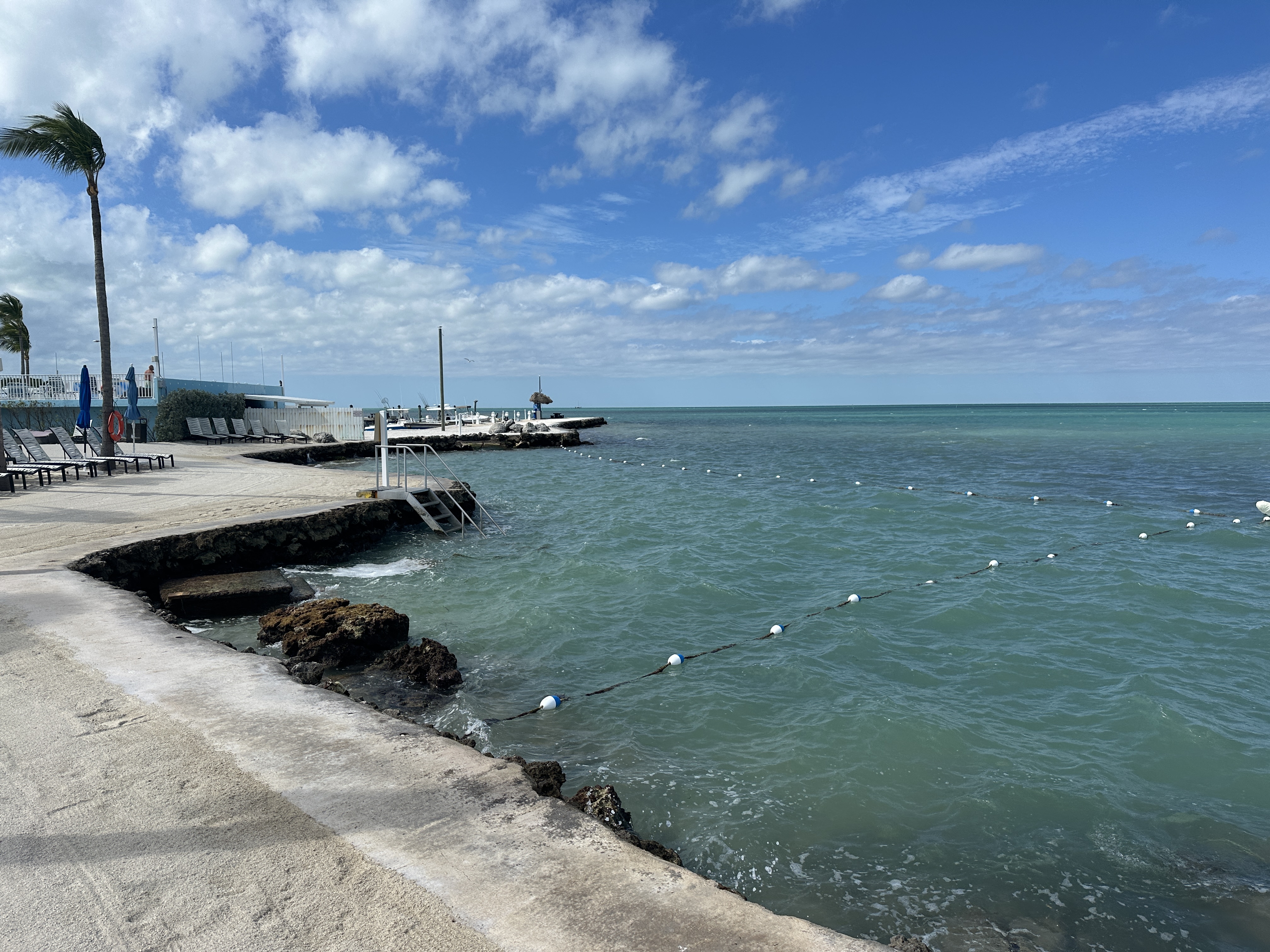 The Saltwater pool at Sunshine Key RV Park. PLENTY of lounge chairs this time! It's about 80 derees and this must be about 1/26/24. |