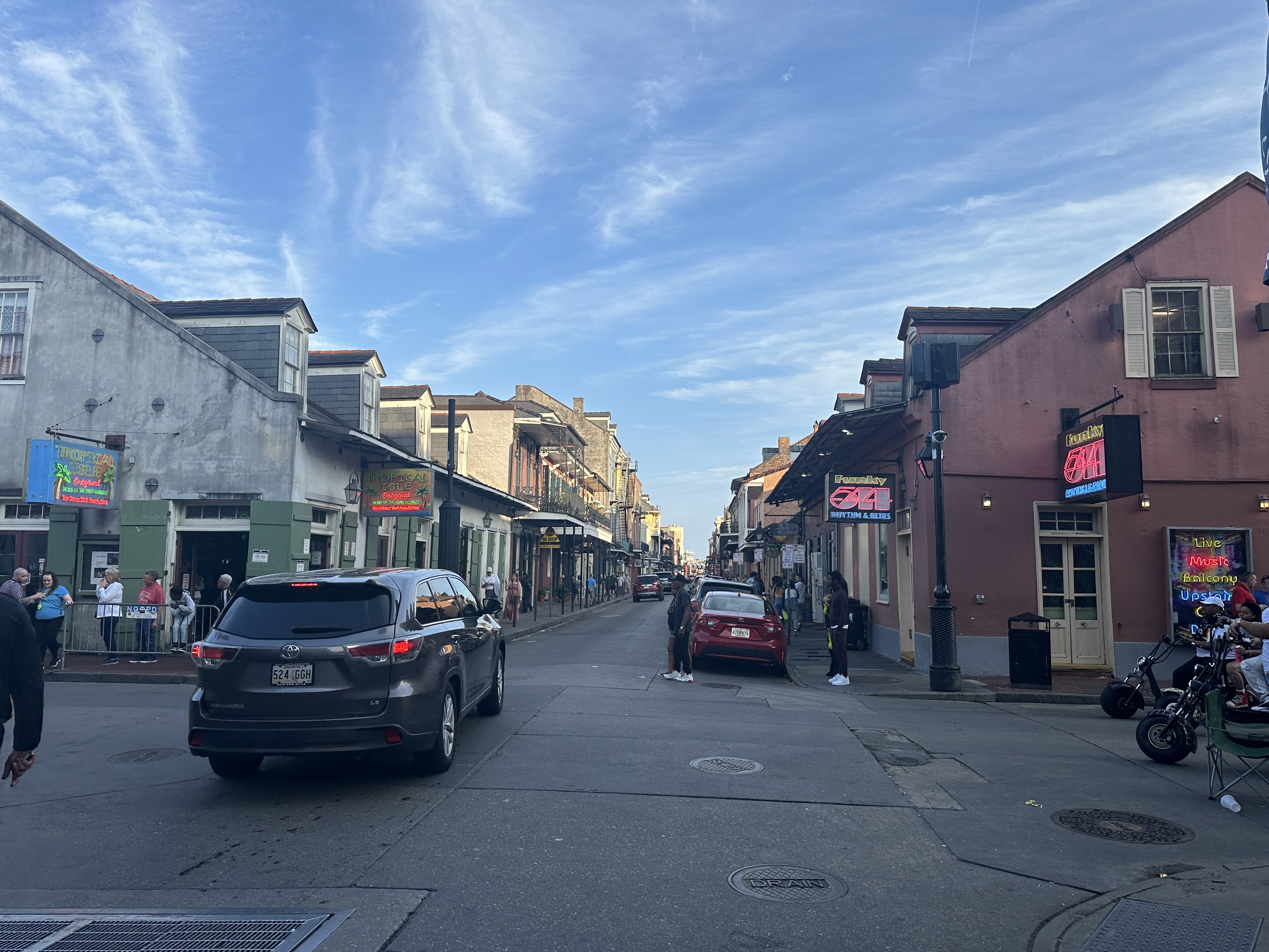Bourbon Street. The activity soon would be so insane that I couldn't even stop for another picture. You gotta come see this! It's only the 3rd of March, but with the gorgeous weather and it's Sunday.... INSANE activity -- It was great!! |