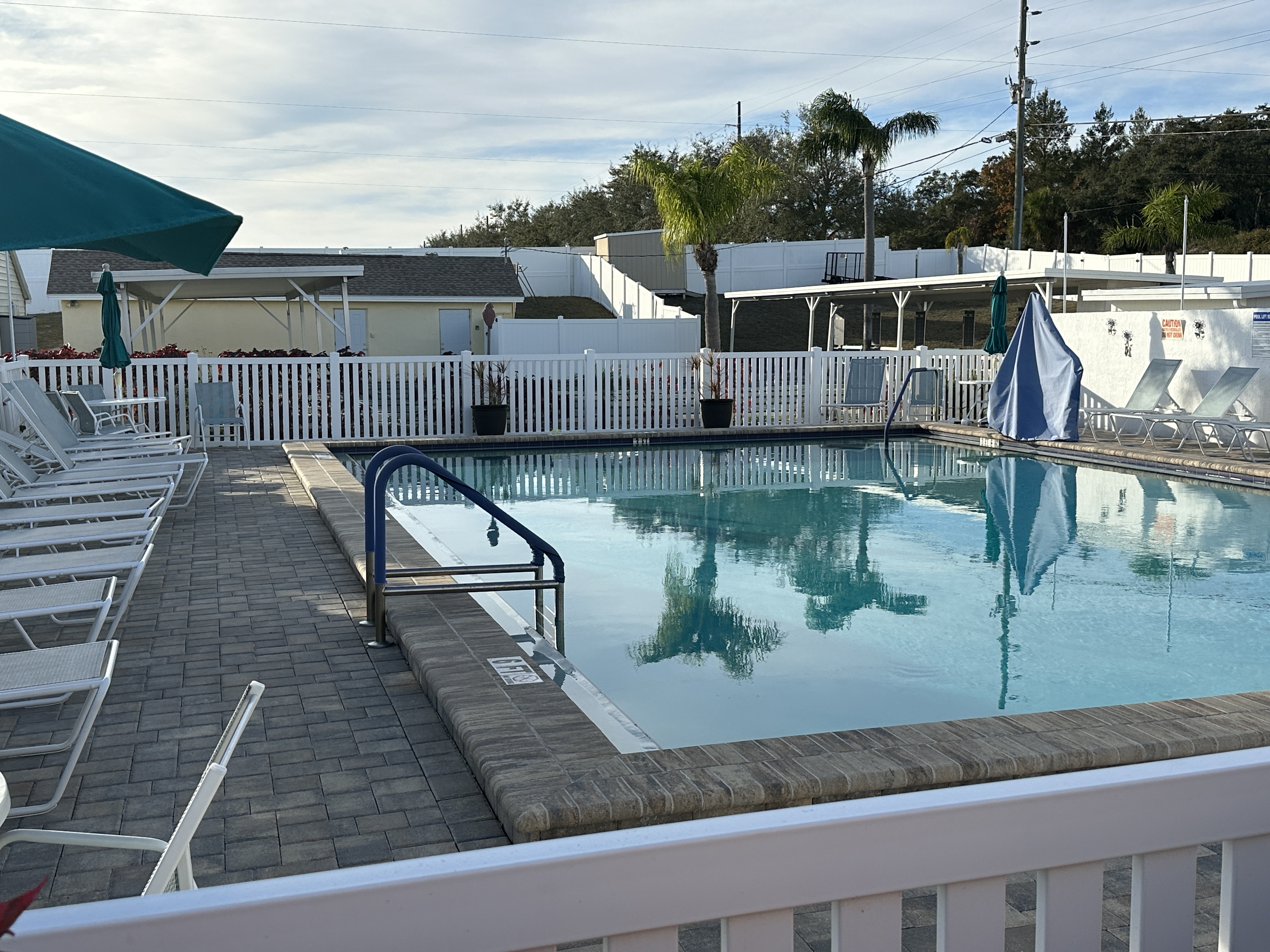 The pool at Barrington Hills RV Park in Hudson, Florida stayed deserted during the COLD weather we had at the end of January into early February. It is still a nice pool and surrounding area, though! |