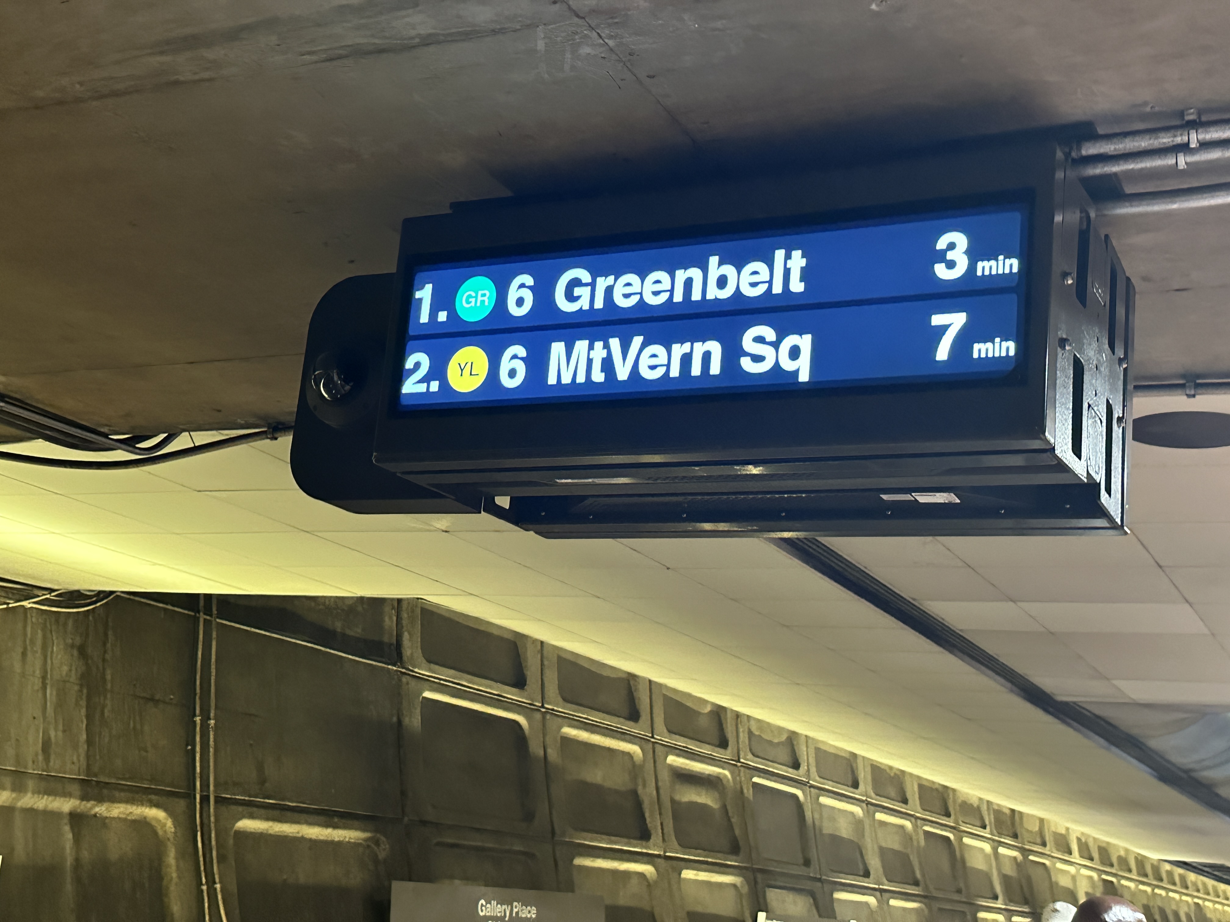 Down in the tunnel that runs the Metro Trains, signs everywhere mark what train is coming, where it is going, what color line it is, and when it arriving/departing (about every 6-7 minutes). |