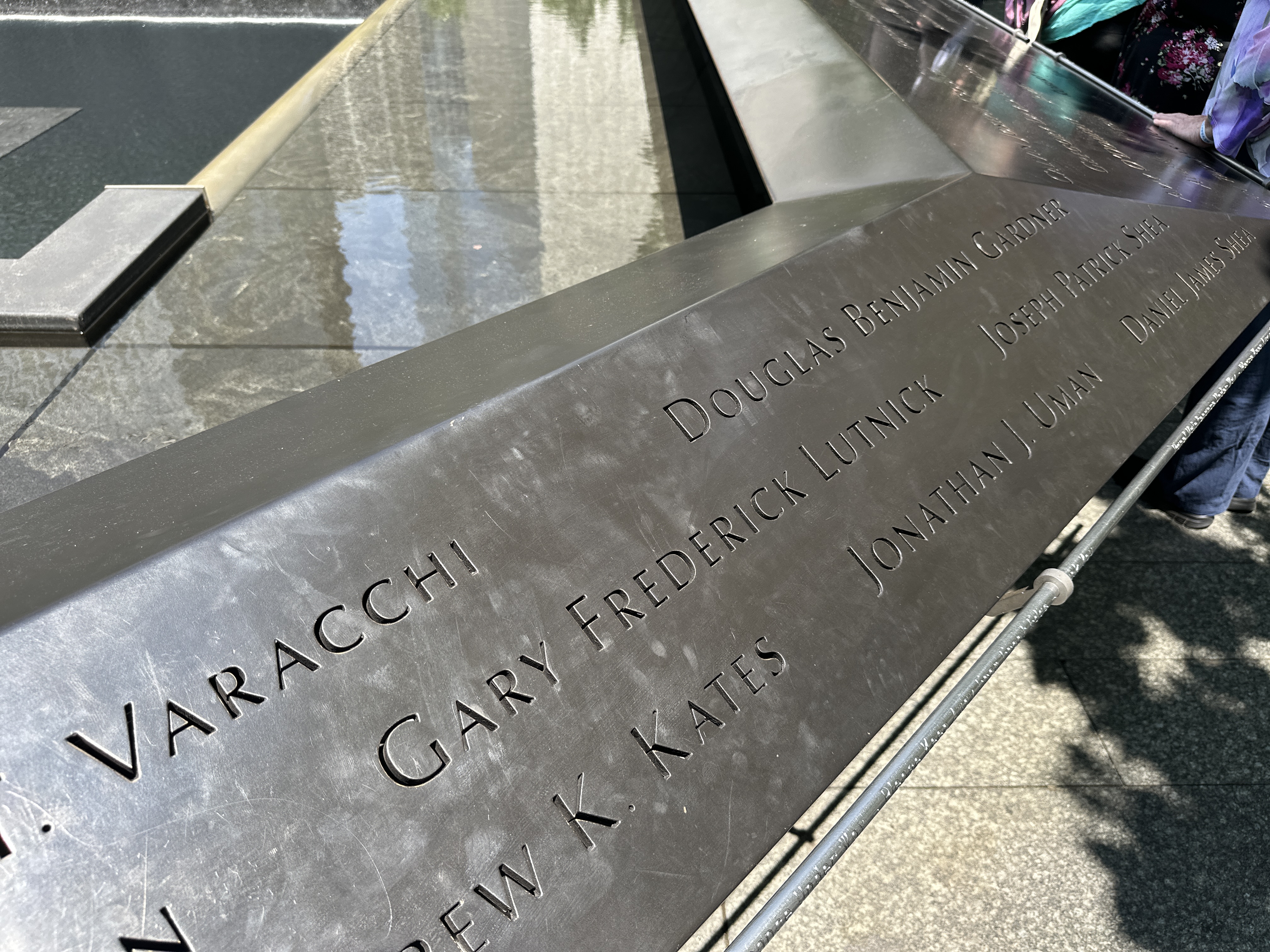 Engravings of those who lost their lives in the tower collapse including first responders. The names also include those killed in the 1993 attack that was the first attempt to take the buildings down. |