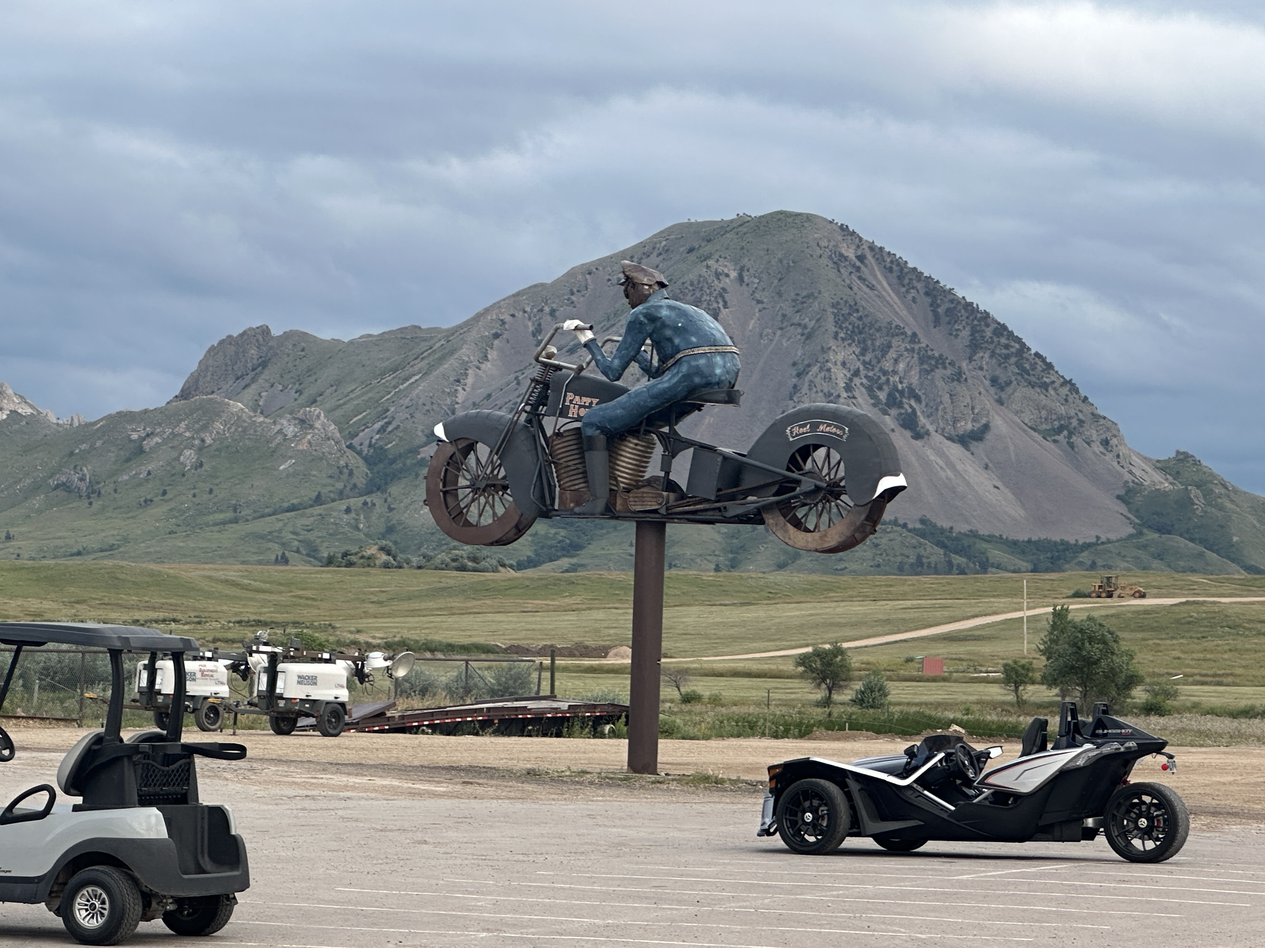 Another sculpture on the perimeter of the parking lot at the Full Throttle Saloon. |
