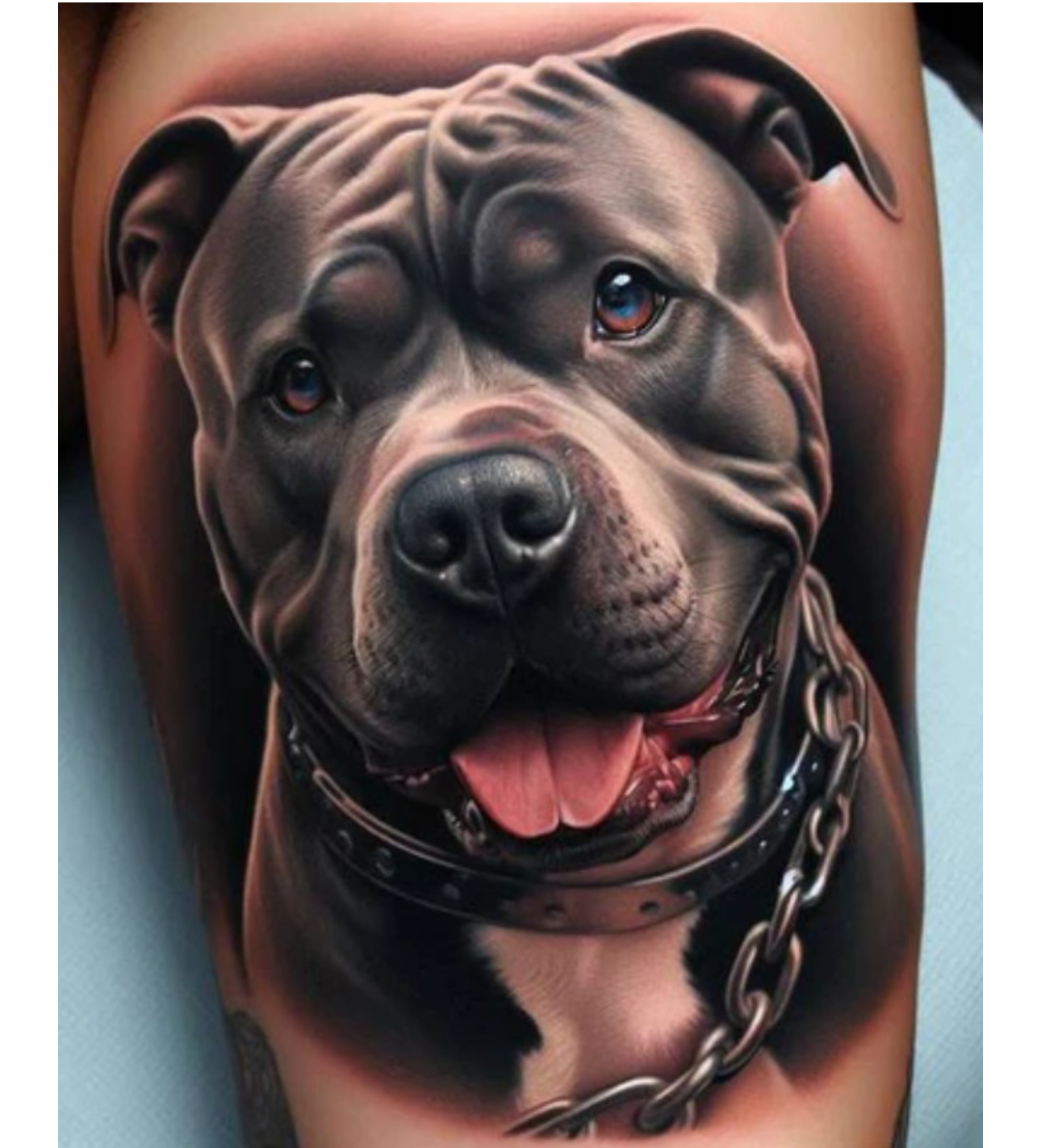 I got two new tattoos, too. this one is of my dear, departed Pittie, Molly. |