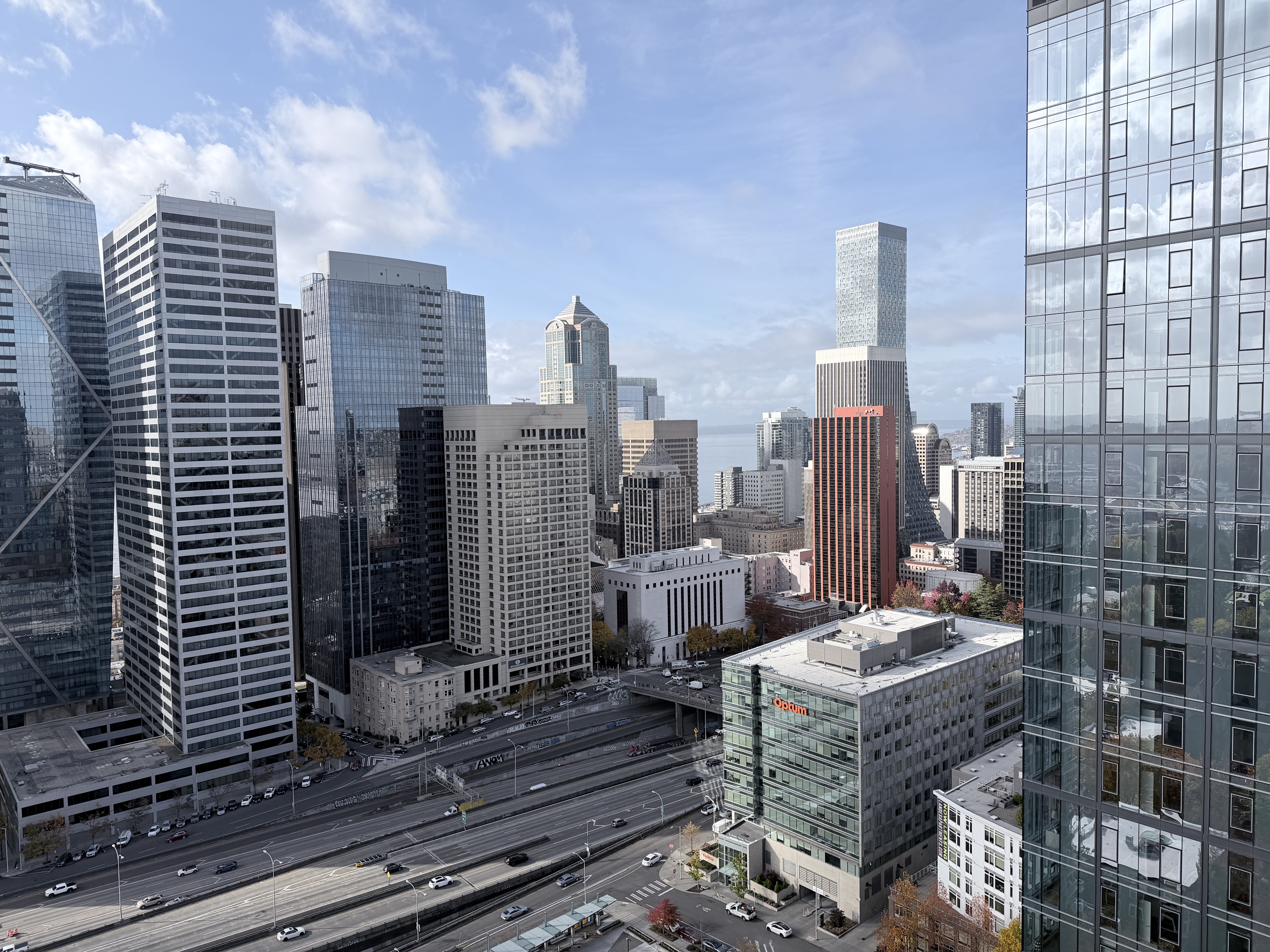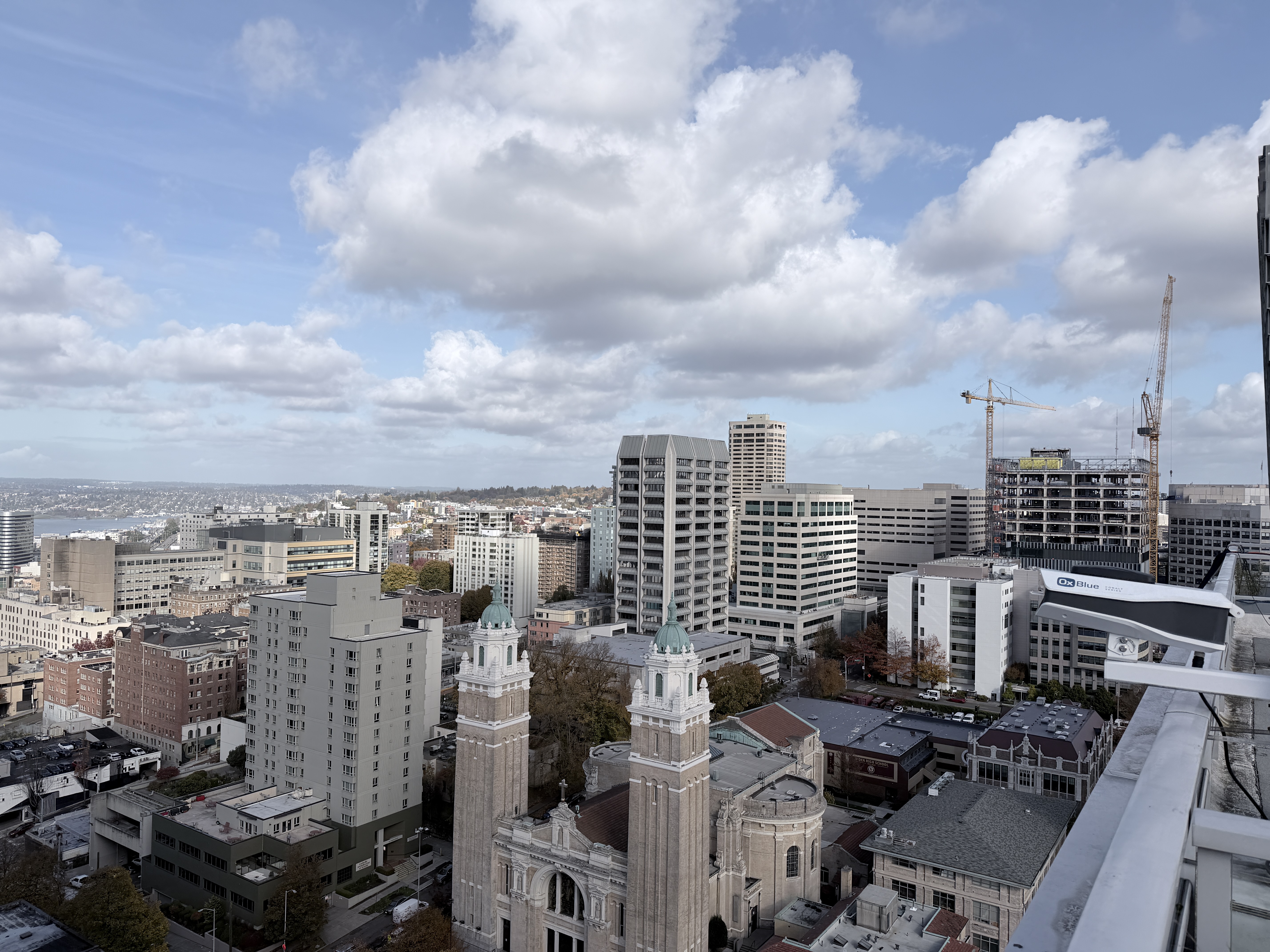 I visited a friend in Seattle on Wednesday, 10/29/25. He and his wife live in a VERY nice 55+ property near downtown. We went up to the roof for some great city views. |