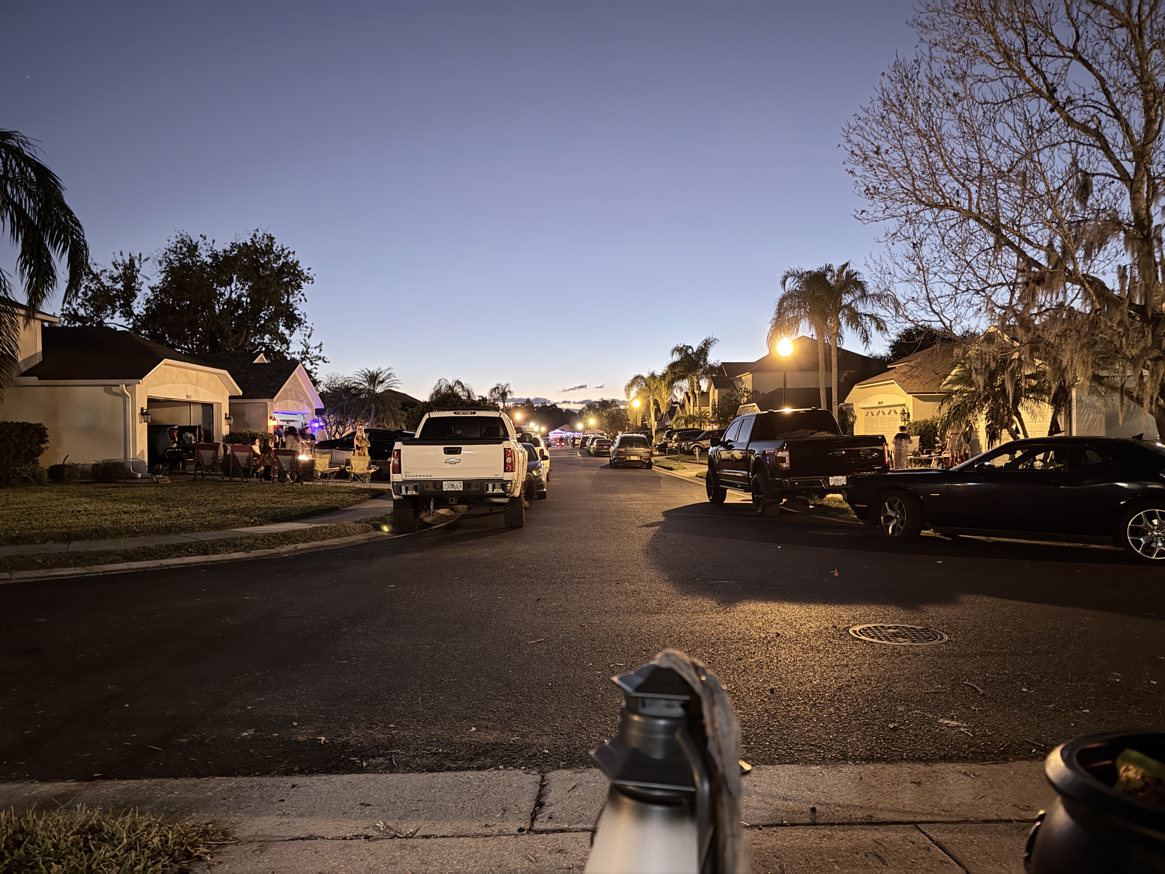 Back to Florida. We visited our son and daughter-in-law and grandson for a Halloween festival at one of their neighbors on the bewitching night. The sunset right as the festivities began was really pretty. |